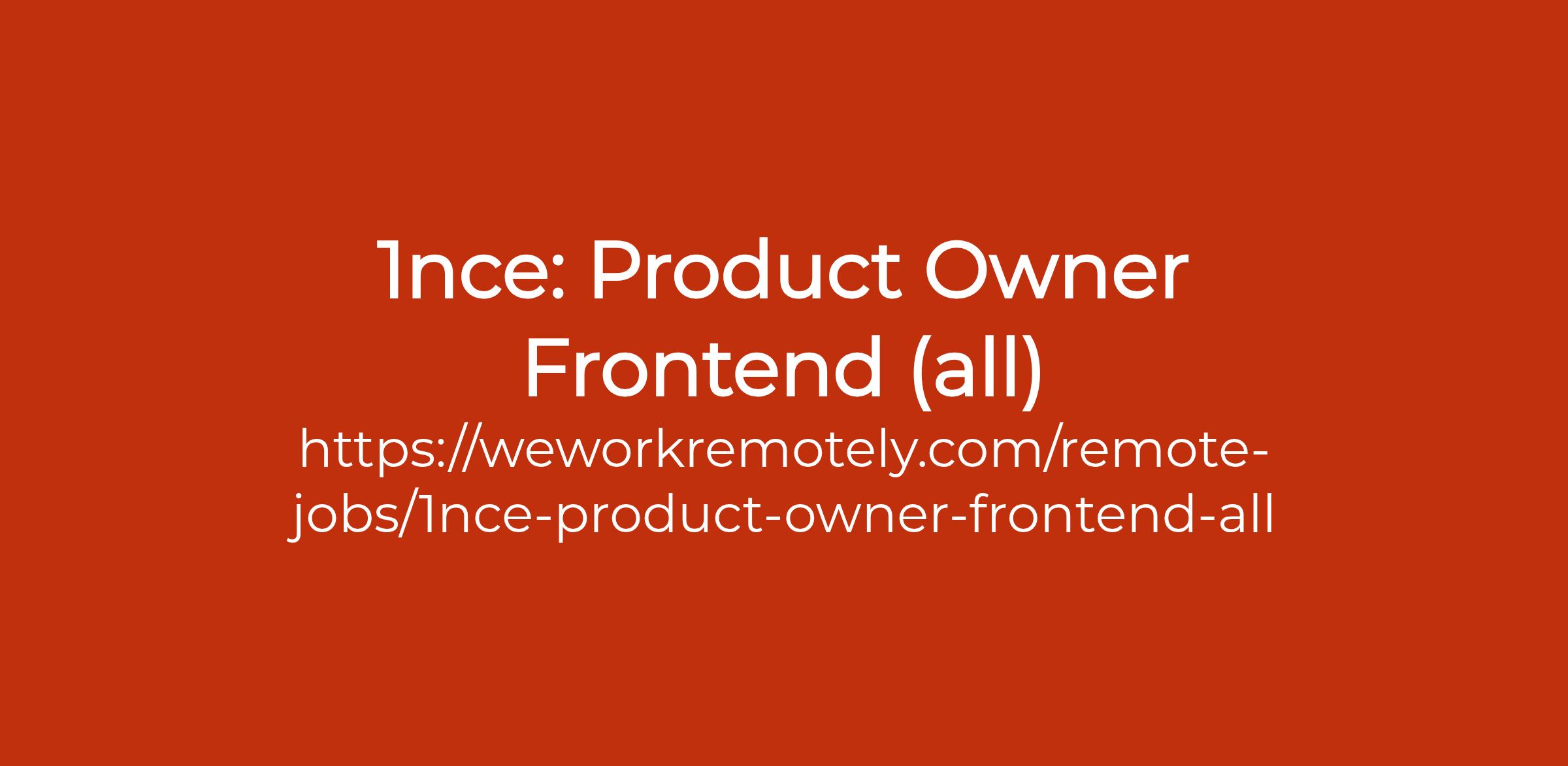 To apply: https://weworkremotely.com/remote-jobs/1nce-product-owner-frontend-all