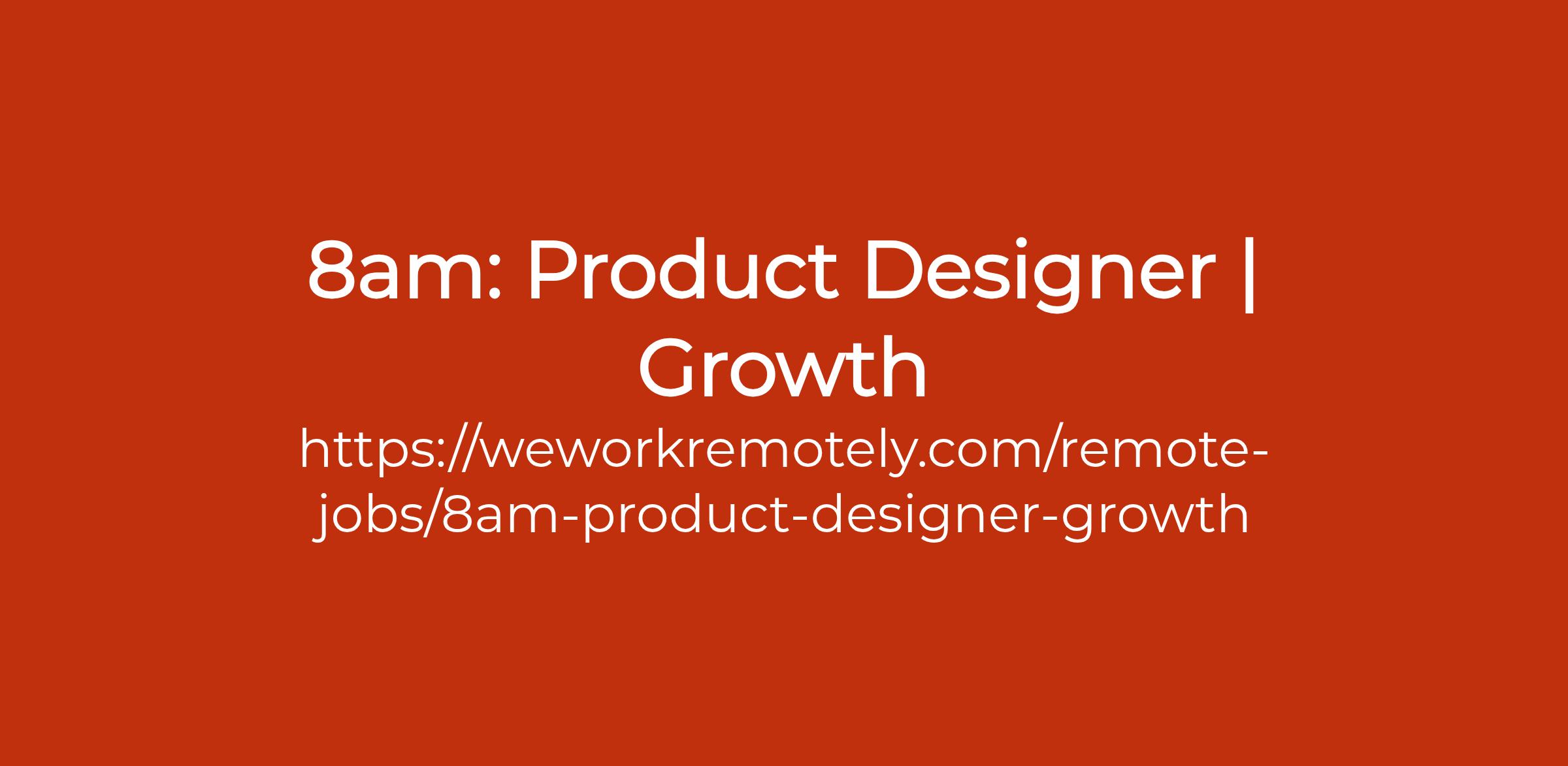 To apply: https://weworkremotely.com/remote-jobs/8am-product-designer-growth