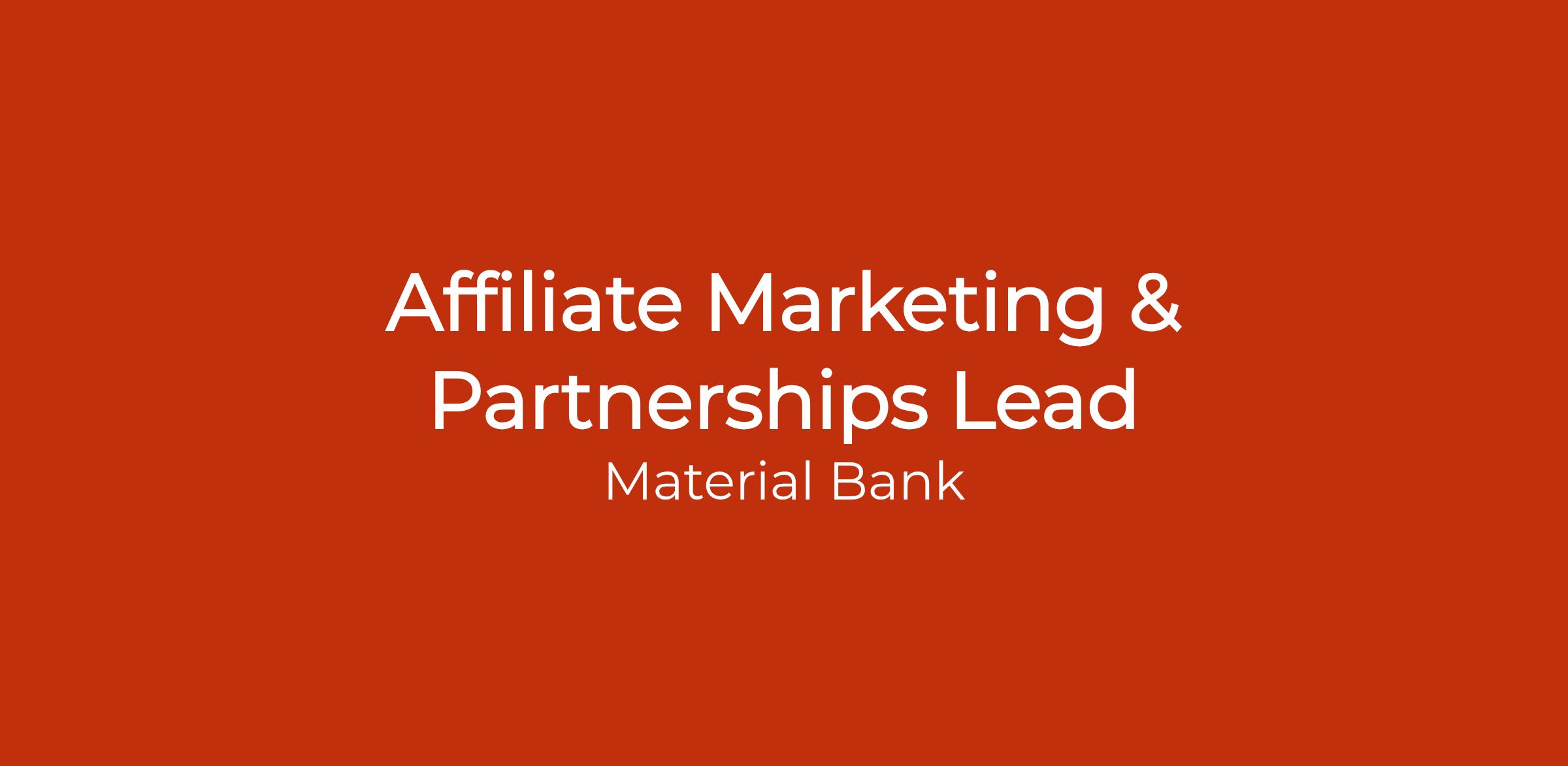 Material Bank is the world's largest material marketplace for the architecture and design industry. Operating in 37 countries, our platform has become the standard for design professionals around the globe. Every day, Material Bank connects thousands of designers with tens of thousands of materials from leading brands. Material Bank is the fastest and most powerful way for design professionals to search, sample, and specify materials.About DesignShop & SamplizeDesignShop and Samplize represent Material Bank's emerging consumer-focused businesses, marking an exciting new chapter in the company's growth strategy. Having successfully built a $2B-valued B2B company, Material Bank is now leveraging its deep expertise in brand relationships, advanced technology, and logistics to unlock significant growth opportunities with end consumers and renovators.Samplize, acquired as our first foray into the consumer space, provides innovative peel-and-stick samples that make paint selection easier than ever. DesignShop serves as an all-in-one platform empowering renovators at every step â from inspiration and visualization to seamless ordering of product samples across multiple categories.About the roleAs an Affiliate Marketing and Partnerships Lead, you will own affiliate marketing, influencer partnerships, and deal site channels across DesignShop and Samplize, driving efficient customer acquisition and measurable revenue growth. This role is critical in shaping how Material Bank reaches and converts new consumer audiences through trusted creators, high quality content, and performance driven partnerships. You will manage these channels end to end, from sourcing and negotiating partnerships to executing campaigns and tracking performance across both brands.This is an exciting opportunity to have direct impact on revenue while operating across two fast-growing consumer businesses. The right person is a commercially-driven, hands-on operator who can manage multiple partnerships, move quickly, and continuously optimize performance. You are comfortable working across both strategy and execution, with strong attention-to-detail, sharp negotiation skills, and a focus on delivering measurable results.What you'll do⢠Own affiliate program performance: Manage affiliate programs end to end across CJ and Refersion, including publisher strategy, commission structures, and coupon code governance. Track performance weekly, monitoring ROAS, incremental revenue, and publisher level efficiency across both brands.⢠Grow and optimize the affiliate partner ecosystem: Identify, onboard, and activate partners across content, deals, loyalty, and cashback categories. Set and optimize commission rates by publisher tier and manage CPA negotiations on a case by case basis.⢠Lead influencer and content partnerships: Source, negotiate, and manage paid influencer partnerships and link buys across bloggers, social creators, and YouTube. Structure deals across flat fee, CPA, hybrid, and licensing models, balancing reach, quality, and ROI.⢠Manage partner execution and relation