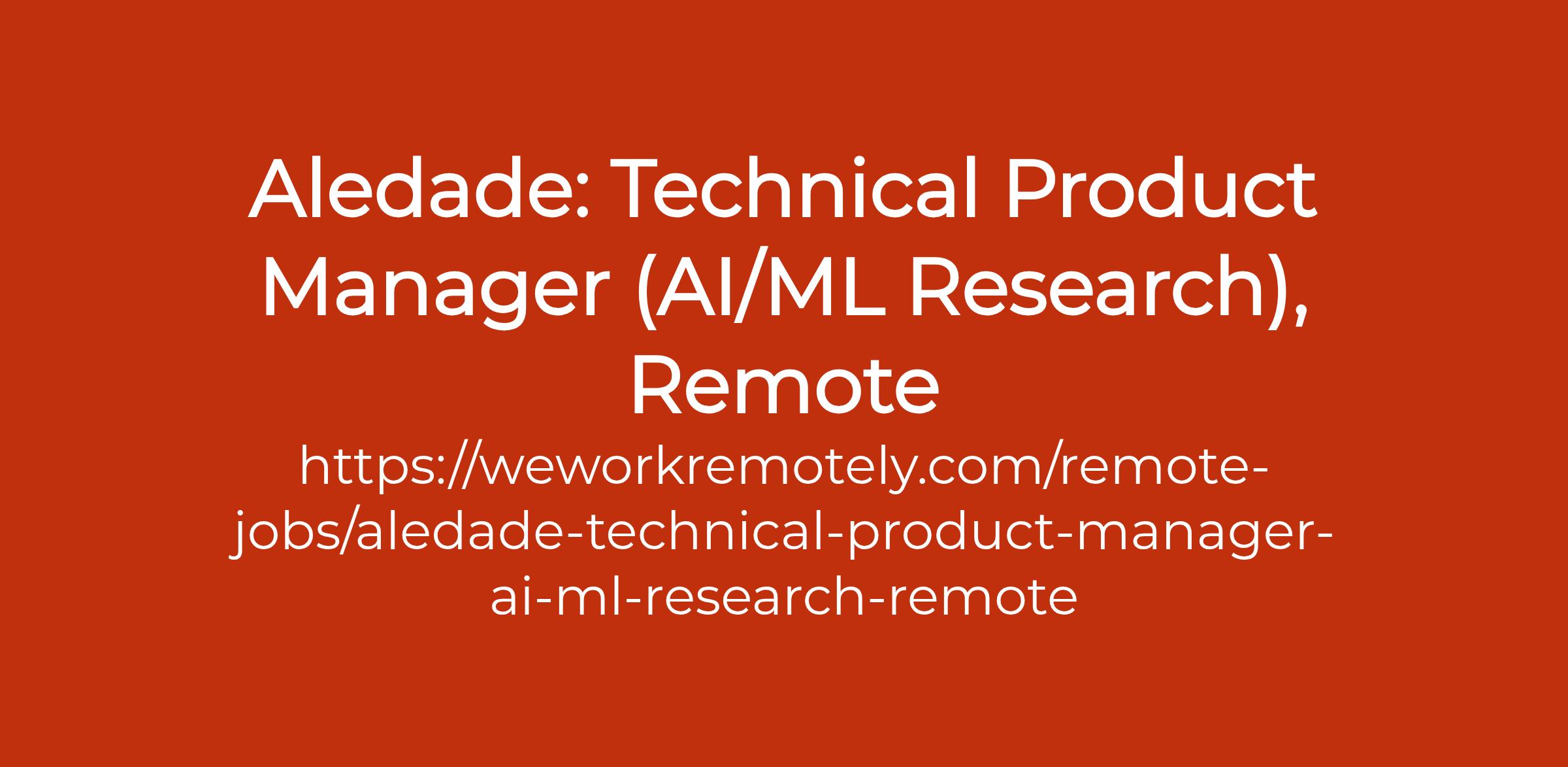 As a Technical Product Manager focused on our AI Research Team, you will be responsible for overseeing the development and deployment of innovative AI experiments and products that drive our company's strategic objectives. You will work closely with cross-functional teams, including data scientists, researchers, engineers, and stakeholders, to ensure that our AI initiatives align with business goals and deliver value to our customers. This role is the interface between strategic business owners and AI Researchers, and ensures that Aledade creates high-quality, scalable AI solutions.Primary Duties:Partner with the AI Research team to cultivate a shared vision for the problem space, constraints, priorities and ideal end state, and be able to articulate and advocate for this perspective. Ongoing optimization of live user workflows and capabilities including monitoring of key metrics & user feedback, in collaboration with clinical, product, and business stakeholders.Work with internal teams and end users to develop a deep understanding of requirements, perform thoughtful solution design, use data to test hypotheses, and support teams throughout execution.Write detailed user stories for new research initiatives and capabilities, capturing detailed descriptions of business rationale, requirements, and success criteria that are defined by measurable outcomes.Develop short- and long-term roadmaps that deliver maximum value with minimum risk and assume ongoing iteration.Minimum Qualifications:6+ years of product management experience in technology, technology-enabled services industry, or a SaaS product.Experience leading the development of research, innovation, or incubation-stage projects.Experience using data and primary research to inform solution design and build internal business understanding.Experience with and understanding of the software development lifecycle and software development methodologies. Preferably experience with Agile / Scrum teams.Preferred Knowledge, Skills and/or Abilities:The ideal candidate will have a strong background in Healthcare data/processes as well as Generative AI and Machine Learning; experience in product management; and excellent leadership skills. Demonstrated ability to independently execute complex queries and comparative analyses against relational databases, using the insights to inform product recommendations and decisions.Working knowledge of building secure and scalable data integration pipelines, including experience connecting to various healthcare data sources via APIs, databases, and other data exchange mechanisms.Successfully launched and scaled an analytical or AI product, ideally in healthcare.Experience working with EHR, physician-facing, or population health products and datasets.Comfort managing a broad set of stakeholders up through the executive level.Who We Are:Aledade, a public benefit corporation, exists to empower the most transformational part of our health care landscape - independent primary care. We were founded in 2014, and since then, we've become the largest network of independent primary care in the country - helping practices, health centers and clinics deliver better care to their patients and thrive in value-based care. Additionally, by creating value-based contracts across a wide variety of health plans, we aim to flip the script on the traditional fee-for-service model. Our work strengthens continuity of care, aligns incentives and ensures primary care physicians are paid for what they do best - keeping patients healthy. If you want to help create a health care system that is good for patients, good for practices and good for society - and if you're eager to join a collaborative, inclusive and remote-first culture - you've come to the right place. What Does This Mean for You?At Aledade, you will be part of a creative culture that is driven by a passion for tackling complex issues with respect, open-mindedness and a desire to learn. You will collaborate with team members who bring a wide range of experiences, interests, backgrounds, beliefs and achievements to their work - and who are all united by a shared passion for public health and a commitment to the Aledade mission. In addition to time off to support work-life balance and enjoyment, we offer the following comprehensive benefits package designed for the overall well-being of our team members: Flexible work schedules and the ability to work remotely are available for many rolesHealth, dental and vision insurance paid up to 80% for employees, dependents and domestic partnersRobust time-off plan (21 days of PTO in your first year)Two paid volunteer days and 11 paid holidays12 weeks paid parental leave for all new parentsSix weeks paid sabbatical after six years of serviceEducational Assistant Program and Clinical Employee Reimbursement Program401(k) with up to 4% matchStock optionsAnd much more! At Aledade, we don’t just accept differences, we celebrate them! We strive to attract, develop and retain highly qualified individuals representing the diverse communities where we live and work. Aledade is committed to creating a diverse environment and is proud to be an equal opportunity employer. Employment policies and decisions at Aledade are based on merit, qualifications, performance and business needs. All qualified candidates will receive consideration for employment without regard to age, race, color, national origin, gender (including pregnancy, childbirth or medical conditions related to pregnancy or childbirth), gender identity or expression, religion, physical or mental disability, medical condition, legally protected genetic information, marital status, veteran status, or sexual orientation. Privacy Policy: By applying for this job, you agree to Aledade's Applicant Privacy Policy available at https://www.aledade.com/privacy-policy-applicantsTo apply: https://weworkremotely.com/remote-jobs/aledade-technical-product-manager-ai-ml-research-remote