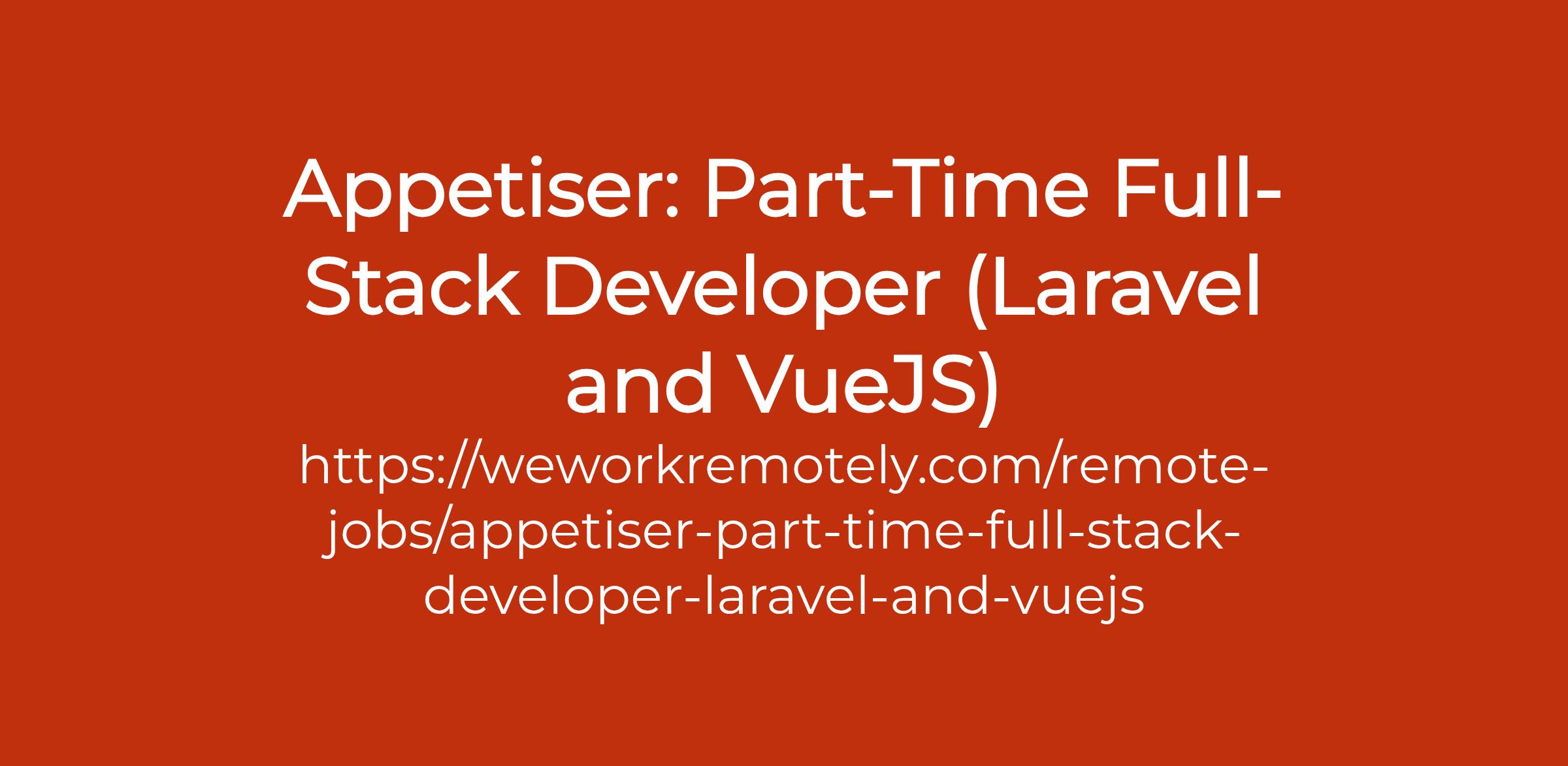Job description"Appetiser challenges me to give the best version of myself. I like how the company is transparent about its business model and anyone can contribute with an idea for its improvement. The culture within the team is unique and everyone is talented and skillful in their profession. We set goals guided by virtues created by the team rather than the traditional core values.” - Jeff Miralles / iOS DeveloperAre you someone who is DRIVING themselves to peak performance?Are you excited by HELPING PEOPLE create technology that impacts millions every day?If you answered YES to these questions, you may be a fit for Appetiser Apps. Join a high-performance team who are striving to go from an Australian market leader to a worldwide phenomenon. Our competitors cannot keep up with our technology, pace, and track record of successful clients.We need ambitious people like YOU to help us grow by 10X over the next 5 years.YOU WILL:BUILD beautiful websites using HTML and CSS to bring creative ideas to life.COLLABORATE with designers and developers to create web apps and backend mobile solutions.COORDINATE with teams to launch content, setting clear timelines and expectations.PLAN for the unexpected by preparing backup solutions to ensure site reliability.GROW and maintain the website by expanding its features and keeping content fresh.LEAD projects and, when needed, take charge of a team from start to finish.ADAPT quickly and take on new tasks as they arise.Job requirementsThe right fit for this role is DETERMINED and AMBITIOUS with: WORK ETHIC that leaves others in their dustRelentless desire to BECOME YOUR VERY BEST, and can prove it!DEEP KNOWLEDGE in technology A TRACK RECORD of IT experience, with a strong background in mobile and web app development, plus a solid grasp of programming basics.BONUS: Past experience as a DEVELOPER, ENGINEER, or PRODUCT MANAGER. Frontend/BackendProficient in using Git for version control and collaborationExperience in writing unit tests and building testable, maintainable codeSolid experience working with Stripe API and documentationUnderstanding of Agile software development practices (Scrum or Kanban)Reliable internet connection (minimum 30 Mbps download / 10 Mbps upload)Must own a personal laptop or desktop capable of handling development workloadsBackend:In-depth experience with Laravel 10 or later and a strong grasp of the Laravel ecosystemSolid knowledge of SQL schema design and SOLID principlesExperience with MySQL query optimization and performance profilingUnderstanding of scalable application architecture and design patternsProficient in developing RESTful APIs, including documentation using tools like Bruno, Insomnia, or PostmanFamiliarity with server setup and deployment, or experience using Amazon Web Services (AWS)Frontend:Proficient in HTML5, CSS3, JavaScript, and pre-processors like SassExperience with the Nuxt.js frameworkUnderstanding of modern frontend practices: composables, state management, component reuse, and responsive designBonus: Hands-on experience with Vitest, Cypress/Playwright, and TypeScriptJoin our team!Flexible Work Arrangements: The ability to work from anywhere in the world as long as you perform.Global Impact: Build products that reach users worldwide and truly make a difference in the world!Public Recognition: Track your achievements as you build a personal portfolio & track record.Join a Culture of Drivers: Become part of a team that’s striving to be their very best. If this resonates with you, please apply today.P.S. We're hiring multiple individuals. If you want to recommend someone, please email us; an attractive referral bonus awaits!P.P.S. If you have any questions, email us at joinus@appetiser.com.auAll done!Your application has been successfully submitted!Other jobsTo apply: https://weworkremotely.com/remote-jobs/appetiser-part-time-full-stack-developer-laravel-and-vuejs