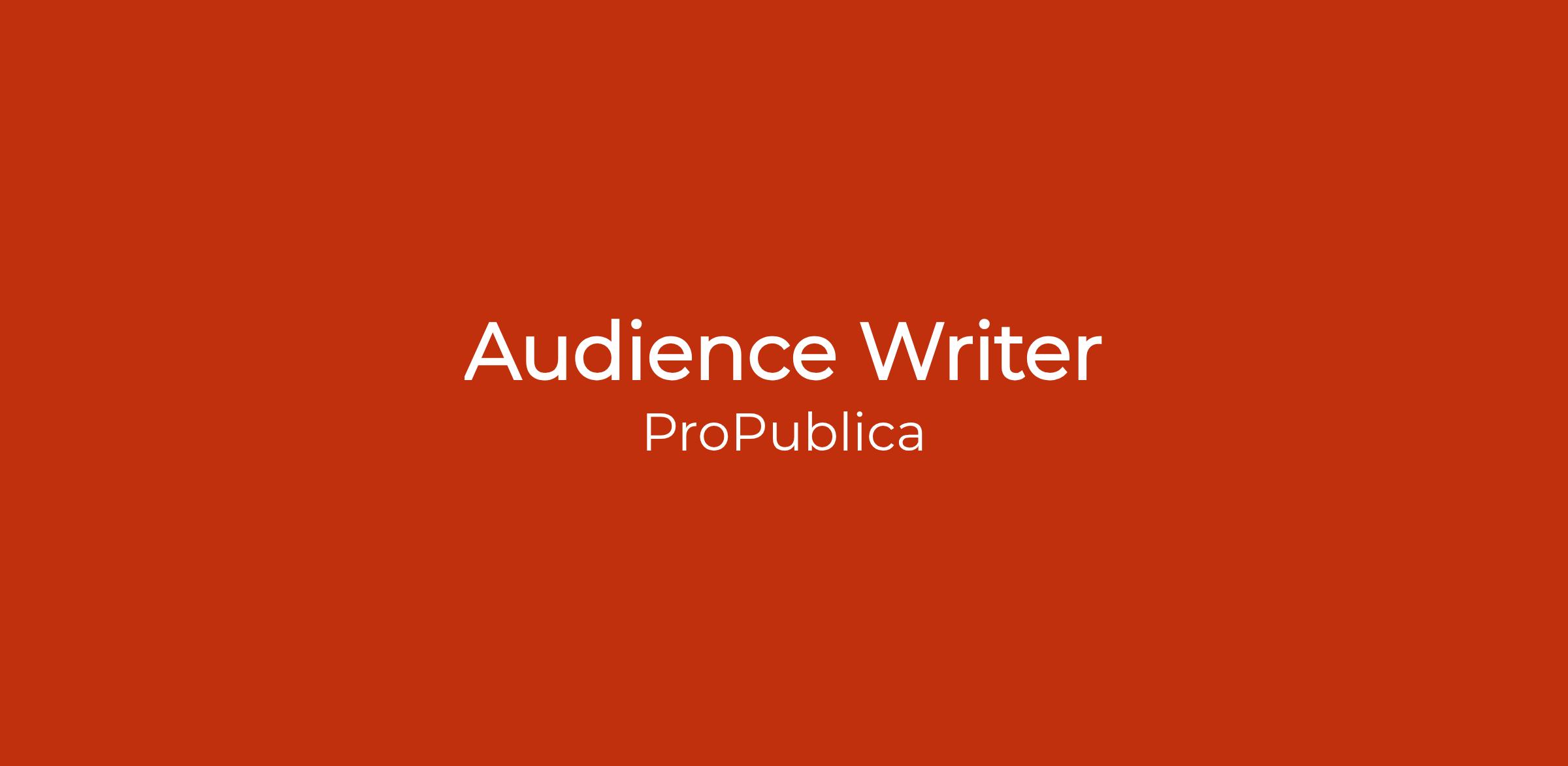 ProPublica is an independent, nonprofit newsroom that produces investigative journalism in the public interest. ProPublica is hiring an experienced writer to adapt our investigative journalism in multiple formats to meet the needs of our audienceâs changing news habits. Over the past year, weâve prioritized presenting our reporting in a number of ways â including explainers, service guides, Q&As with reporters and takeaways â to better serve readers. This role will play an essential role in meeting our growing ambitions to reach and engage new audiences.Weâre looking for someone who is passionate about experimenting with creative approaches to telling stories; who can work collaboratively with reporters and editors; and who knows how to connect the dots between stories to contextualize the news for readers. The person in this role will work closely with staffers across the newsroom to produce short-form sections for newsletters and written-through standalone pieces that bring dimension and life to our journalism. They should bring a strong understanding of audience best practices and should be able to deliver sharp, quick and error-free copy. This is a full-time role that will report directly to the audience manager for newsletters, search and partnerships and will work most closely with the newsletter team, which s