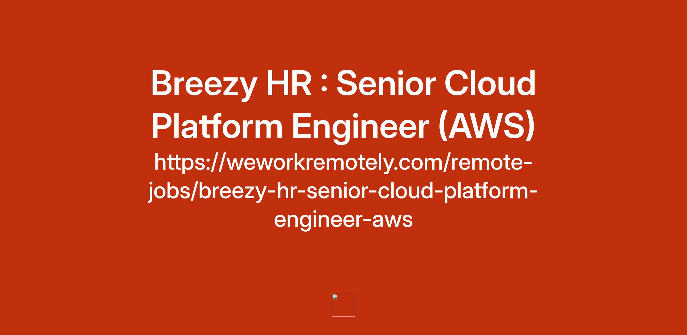To apply: https://weworkremotely.com/remote-jobs/breezy-hr-senior-cloud-platform-engineer-aws