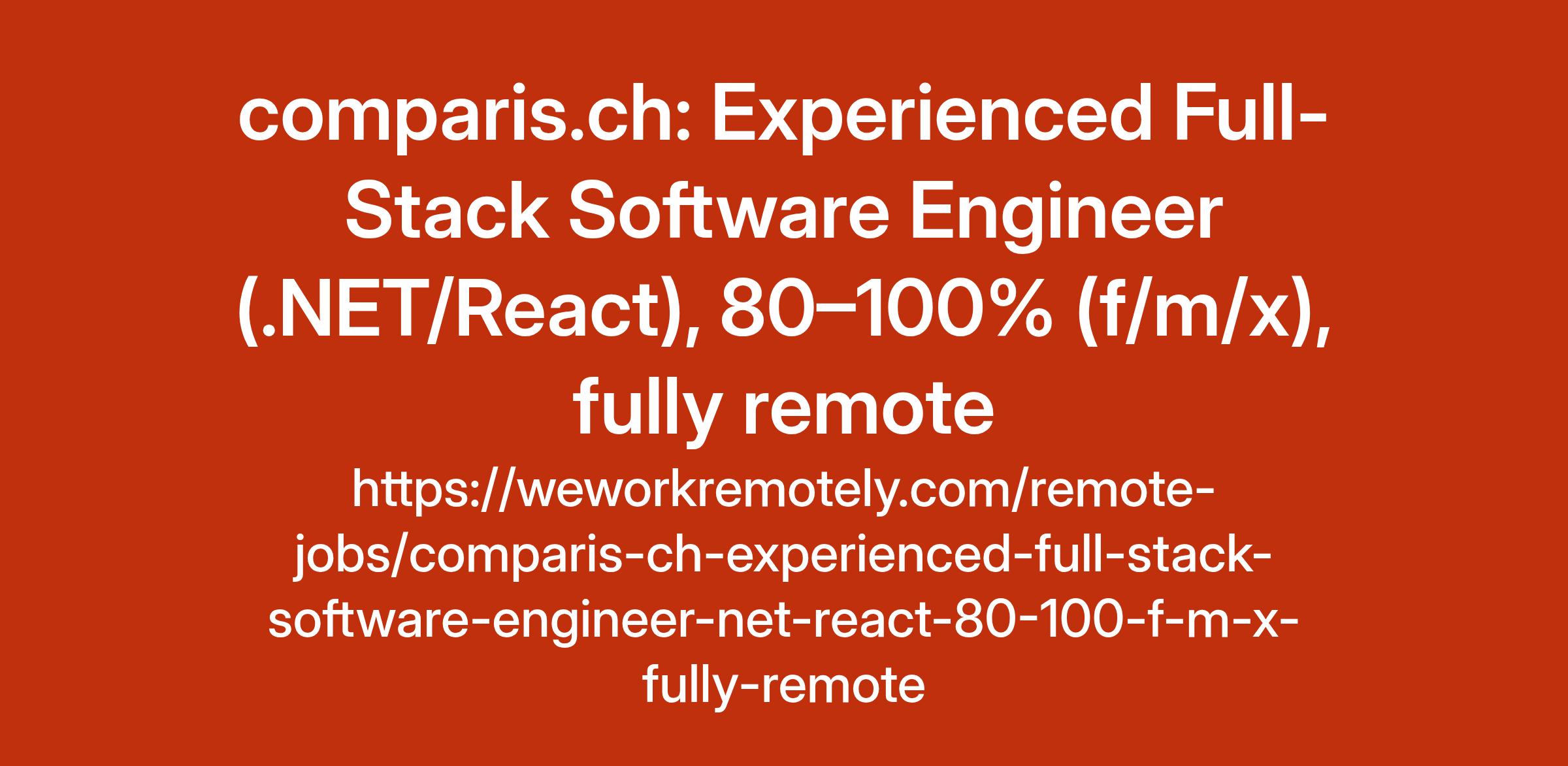 To apply: https://weworkremotely.com/remote-jobs/comparis-ch-experienced-full-stack-software-engineer-net-react-80-100-f-m-x-fully-remote