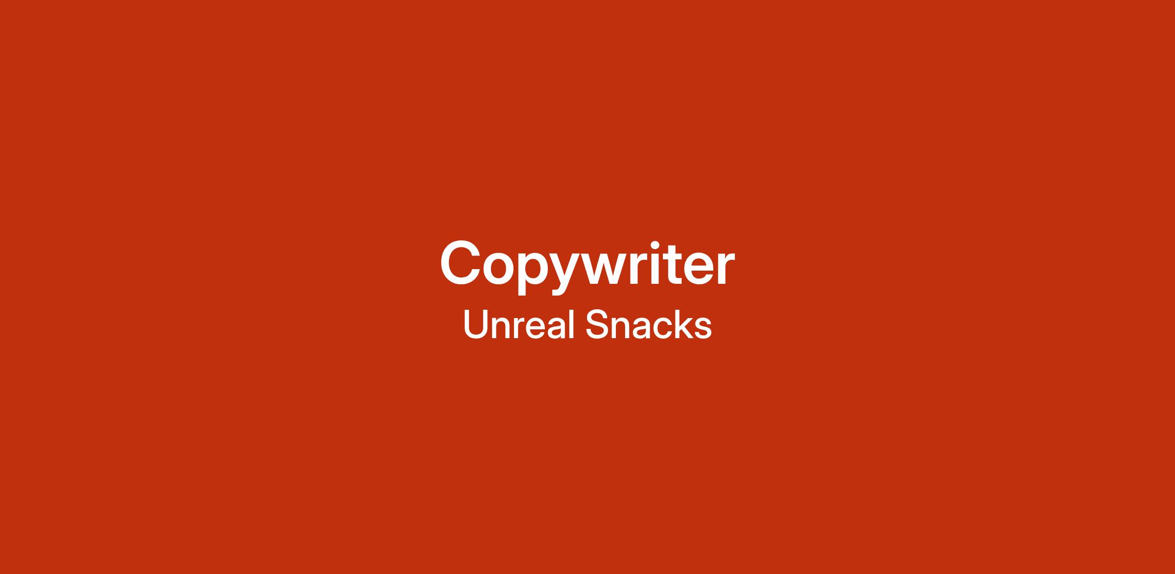 Weâre looking for an organized, versatile, and driven Copywriter to sharpen and evolve Unreal's bold, clever, vibrant, and candid brand expression. Reporting to the Director of Brand Voice, youâll own copy creation across email, social, and paid channels, and support strategic content development for 360° copywriting campaigns across all marketing channels. Collaborating closely with team members across Unrealâs Commercial team, youâll manage the development of concise, clever, on-brand copy ranging from big-picture creative concepts to small-scale, detailed assets.