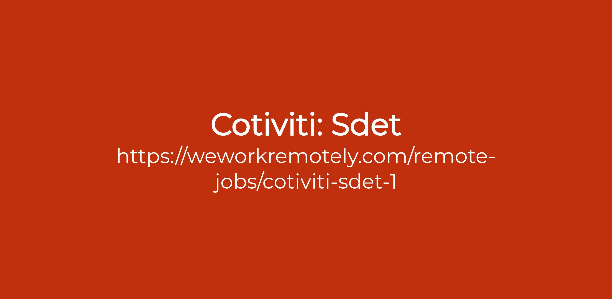 To apply: https://weworkremotely.com/remote-jobs/cotiviti-sdet-1