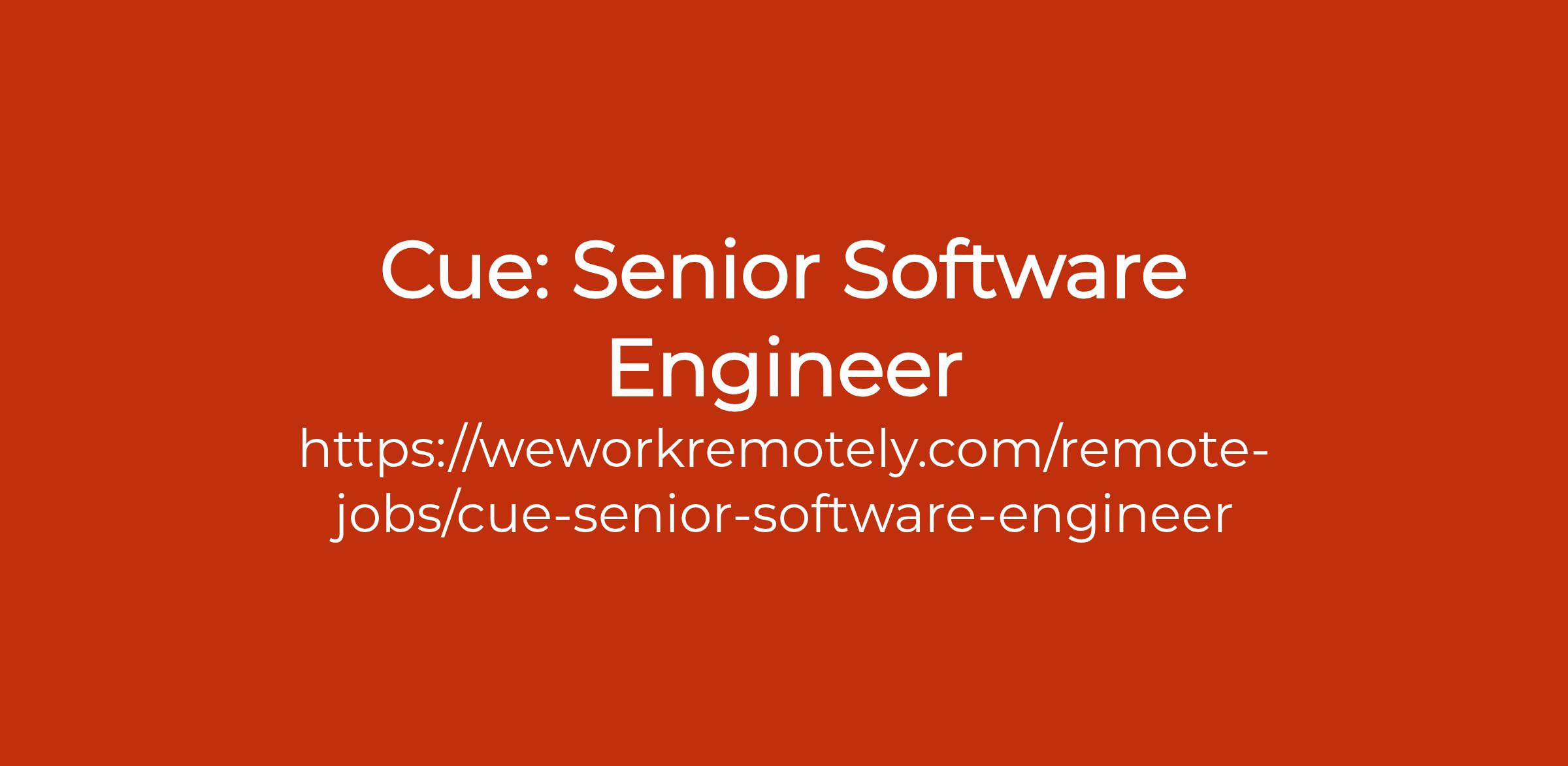 To apply: https://weworkremotely.com/remote-jobs/cue-senior-software-engineer