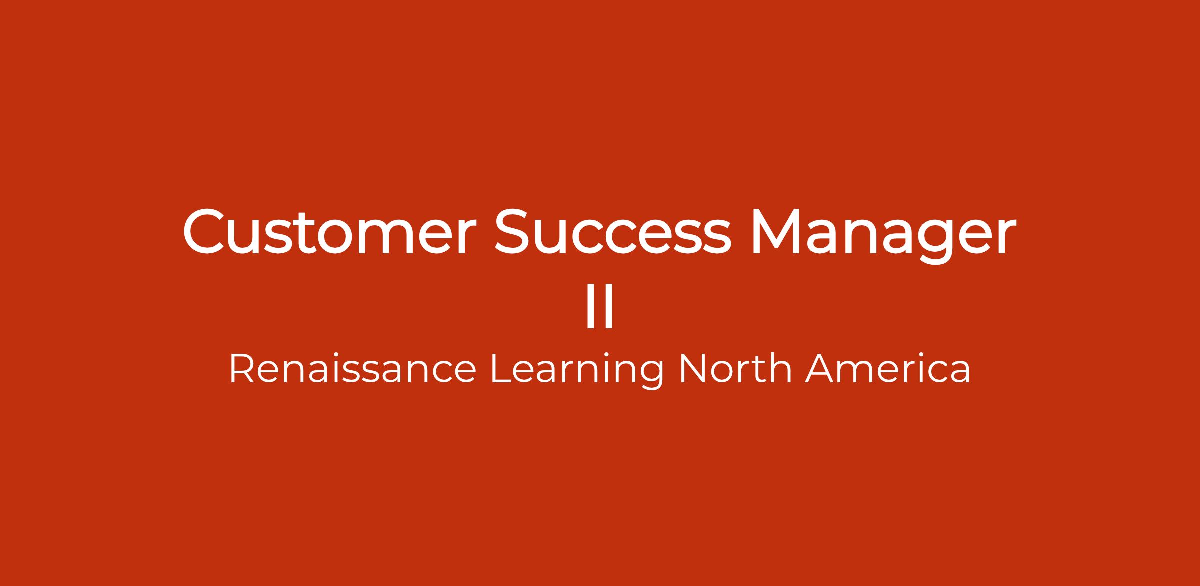 About RenaissanceWhen you join Renaissance®, you join a global leader in pre-Kâ12 education technology! Renaissance's solutions help educators analyze, customize, and plan personalized learning paths for students, allowing time for what mattersâcreating energizing learning experiences in the classroom. Our fiercely passionate employees and educational partners have helped drive phenomenal student growth, with Renaissance solutions being used in over one-third of US schools and in more than 100 countries worldwide.Every day, we are connected to our mission by exemplifying our values: trust each other, win together, strive for the best, own our actions, and grow and evolve.Job DescriptionWe believe that Customer Success is all about understanding your customers' desired outcomes and working with them to ensure they experience the most value possible along the way. As a Customer Success Manager (CSM) at Renaissance, you are a part of the teacher and administrator journey through onboarding, nurturing, and renewal. The goal is to not only retain your customers, but to ensure that they have an exceptional experience with our platform(s) that drives successful student learning outcomes. This role manages District and School level accounts, and we are looking