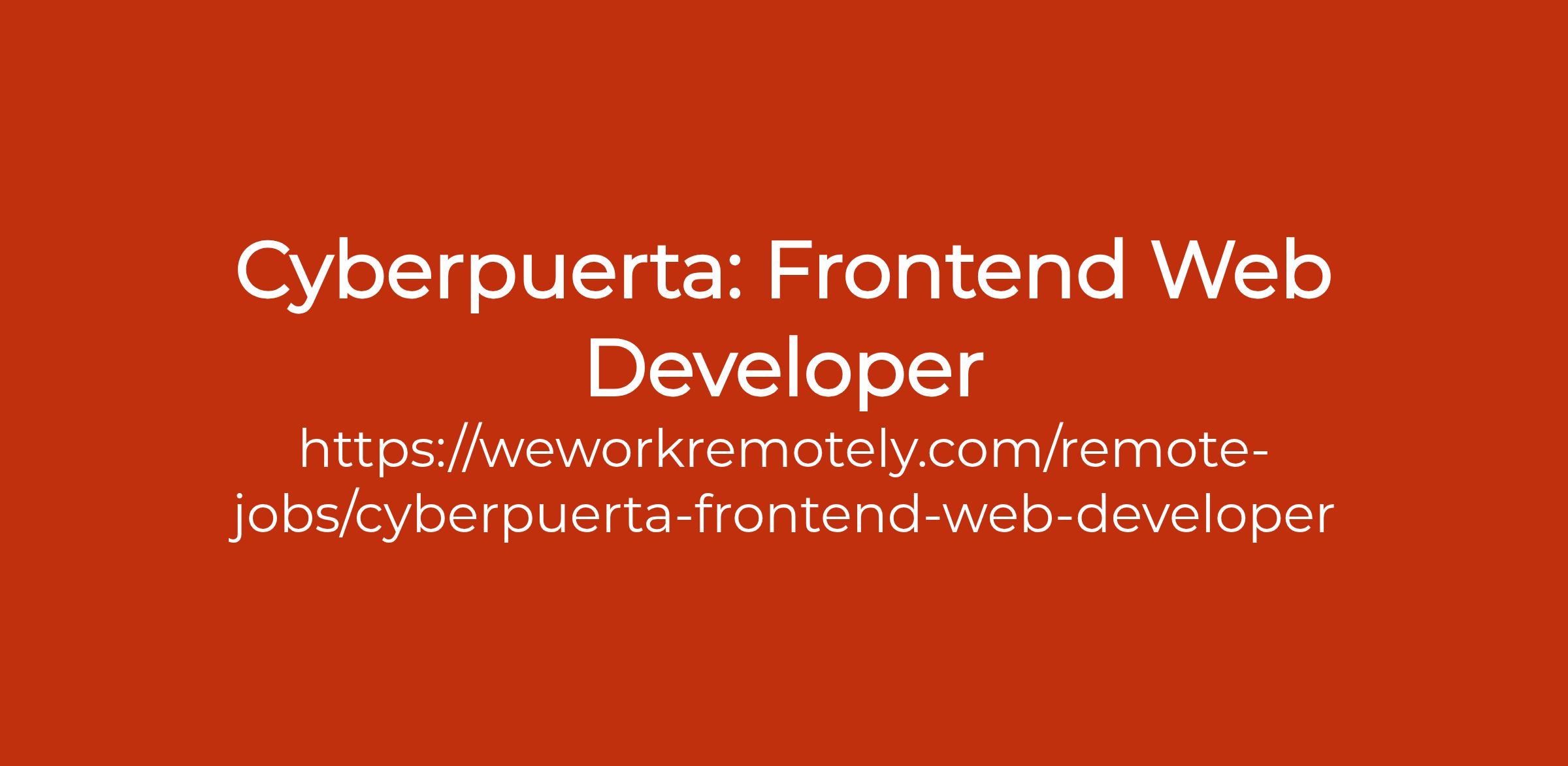 To apply: https://weworkremotely.com/remote-jobs/cyberpuerta-frontend-web-developer