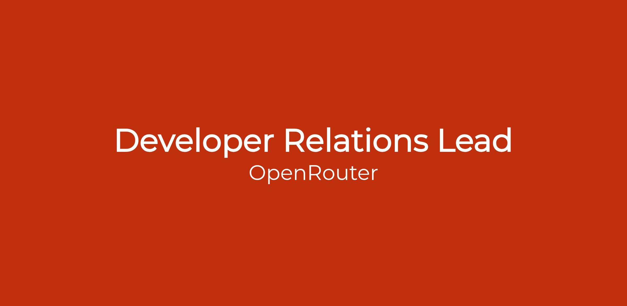 Weâre looking for a Developer Relations Lead to become the trusted voice of developer education for OpenRouter. You will be the person developers think of when they think about learning how to integrate with OpenRouter and how to design, evaluate, and operate multi-model AI systems in production.