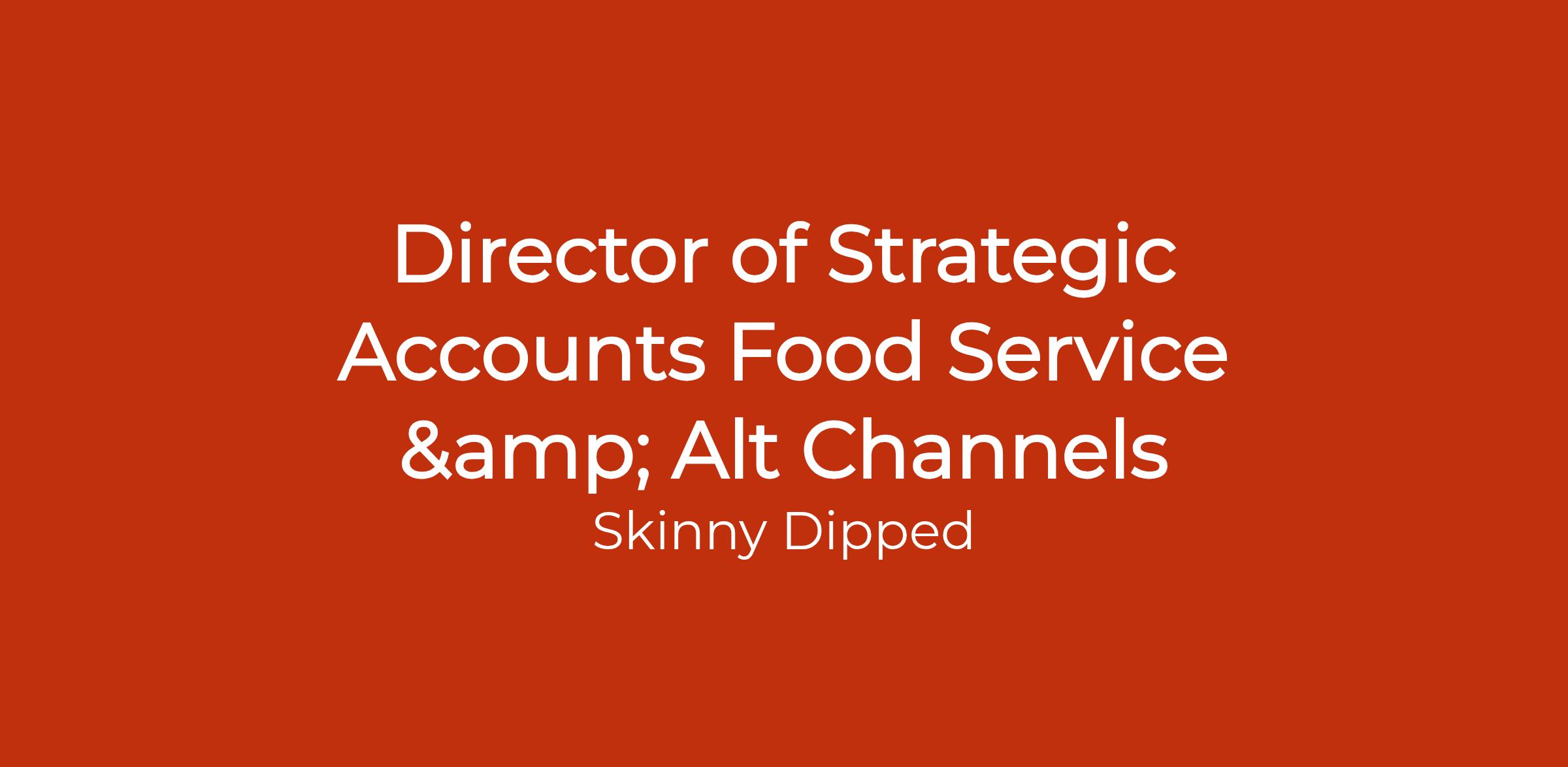 Weâre looking for a strategic, entrepreneurial Director of Strategic Accounts to lead and scale SkinnyDippedâs business across Foodservice and Alternative Channels nationwide. This includes (but is not limited to) accounts such as corporate campuses, college & university, travel, hospitality, entertainment venues, and unattended retail.