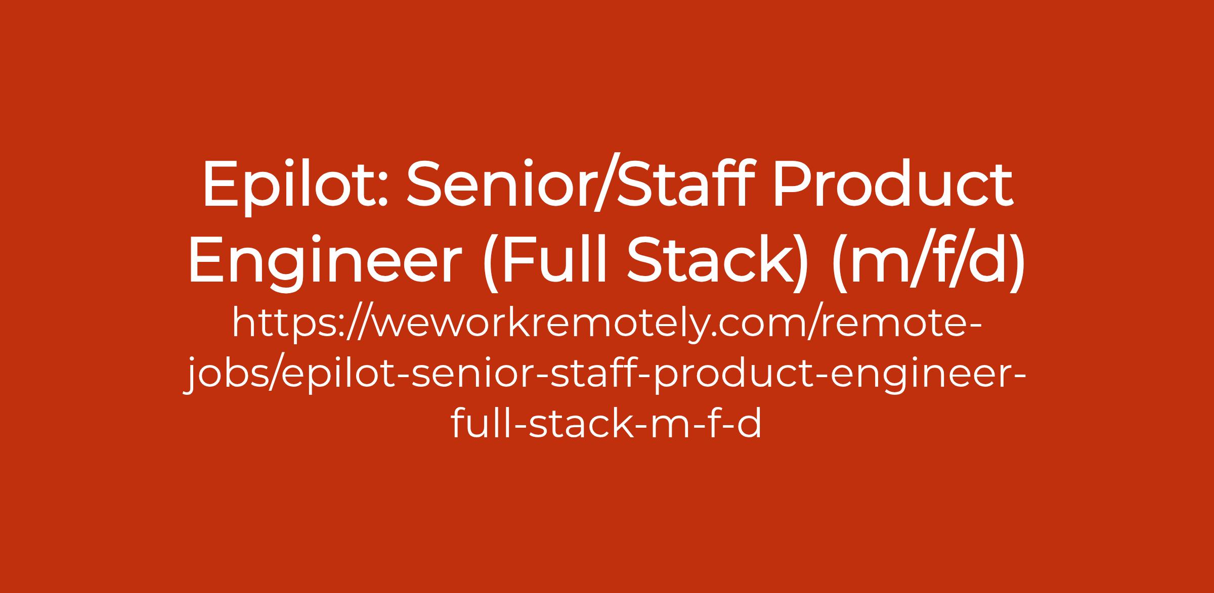 Are you ready to be a technology leader in the SaaS space? Join epilot! We are looking for product minded engineers not only coders. We're seeking builders who bridge technical expertise with product strategy. If you're passionate about impactful software, apply now! (Learn more about our understanding of being a product engineer here) epilot is building a SaaS product to sell complex products online, focusing first on solving ecommerce in the rapidly transforming energy market. Our mission: Make selling complex products as easy as selling a pair of shoes online. As Software Engineer at epilot you will be a driving force in shaping this mission. What makes working as a Software Engineer at epilot so special? Our unique engineering culture is defined by a few core engineering principles. Among others, you can expect freedom and responsibility because we hire smart people who we can trust. We operate by principles and expect our teams to cultivate a strategic mindset. We believe in ownership: you build it, you run it. We subscribe to this core principle of the DevOps movement. There is no dedicated Ops team who you can pass on the responsibility to take your code and make sure it runs reliably and scales to customers’ needs. You should always show, don’t tell: Deliver working software early and frequently. We believe in the basic Agile principle of “Release early and release often”. This approach helps us manage risk and make better decisions by creating fast feedback loops between ourselves and our users. We design software API First. Before we write a single line of code, we design the APIs of a service in a way that any other team, whether internal to epilot or external, can use the APIs interface with our service without prior knowledge. Does this sound like an environment you want to work in? Then you could bet the right person to be an engineer at epilot! Check out our promise to you: promise.epilot.cloud We "epilots" are a team of experts from the fields of software development, energy management, product management and sales. In order to bring our solution even faster to the top in the energy world, we are looking for you as a Senior Product Engineer (Full Stack).To apply: https://weworkremotely.com/remote-jobs/epilot-senior-staff-product-engineer-full-stack-m-f-d