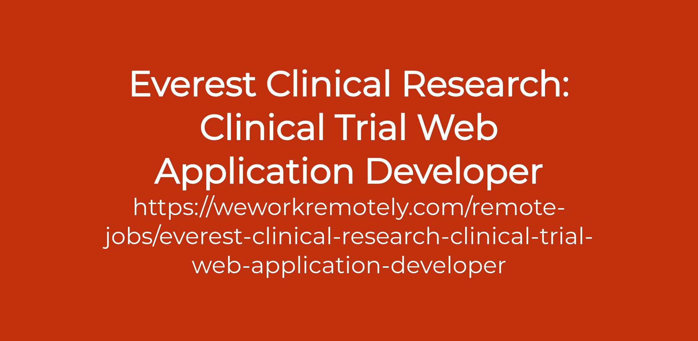 To apply: https://weworkremotely.com/remote-jobs/everest-clinical-research-clinical-trial-web-application-developer