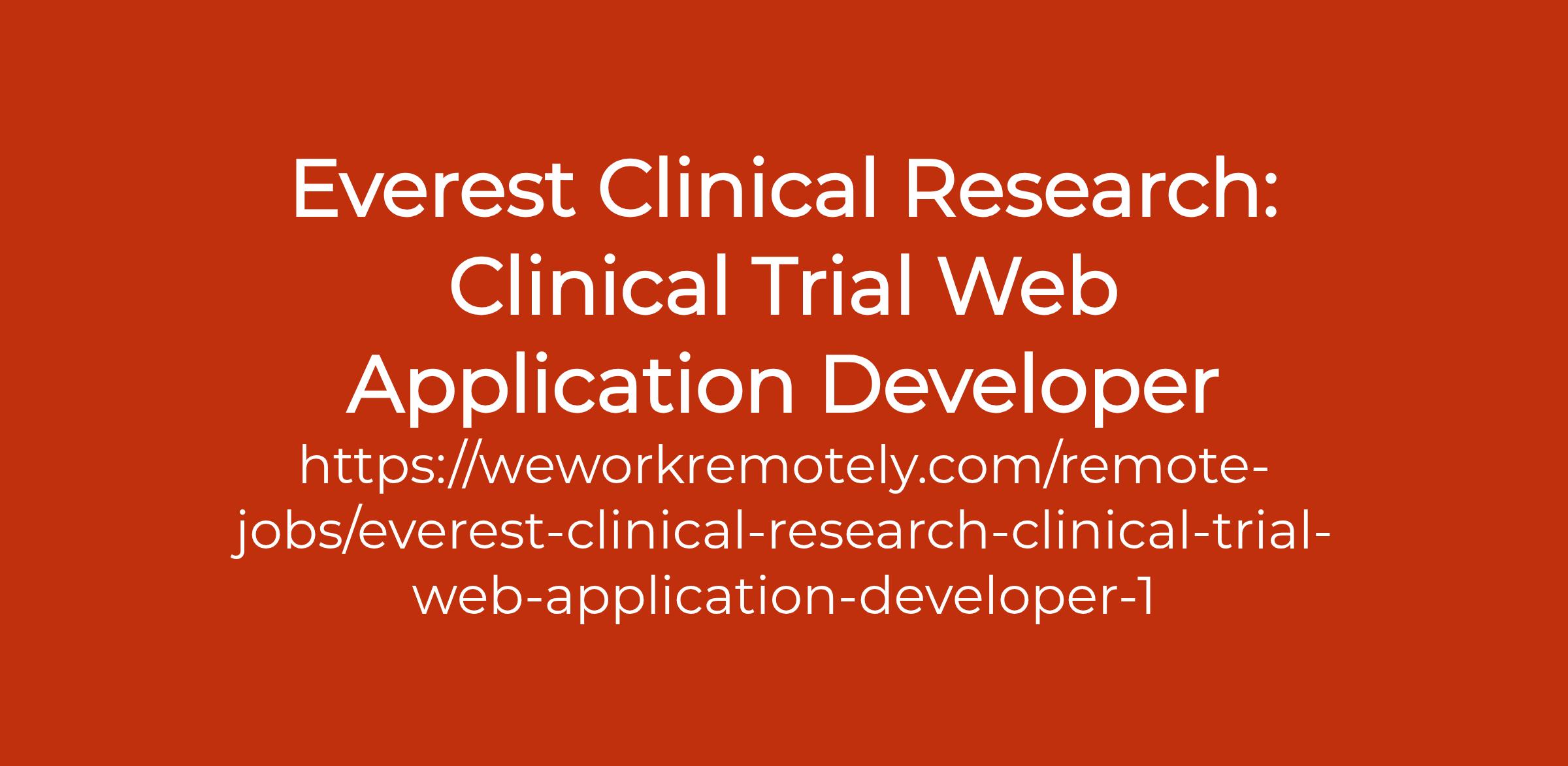 To apply: https://weworkremotely.com/remote-jobs/everest-clinical-research-clinical-trial-web-application-developer-1