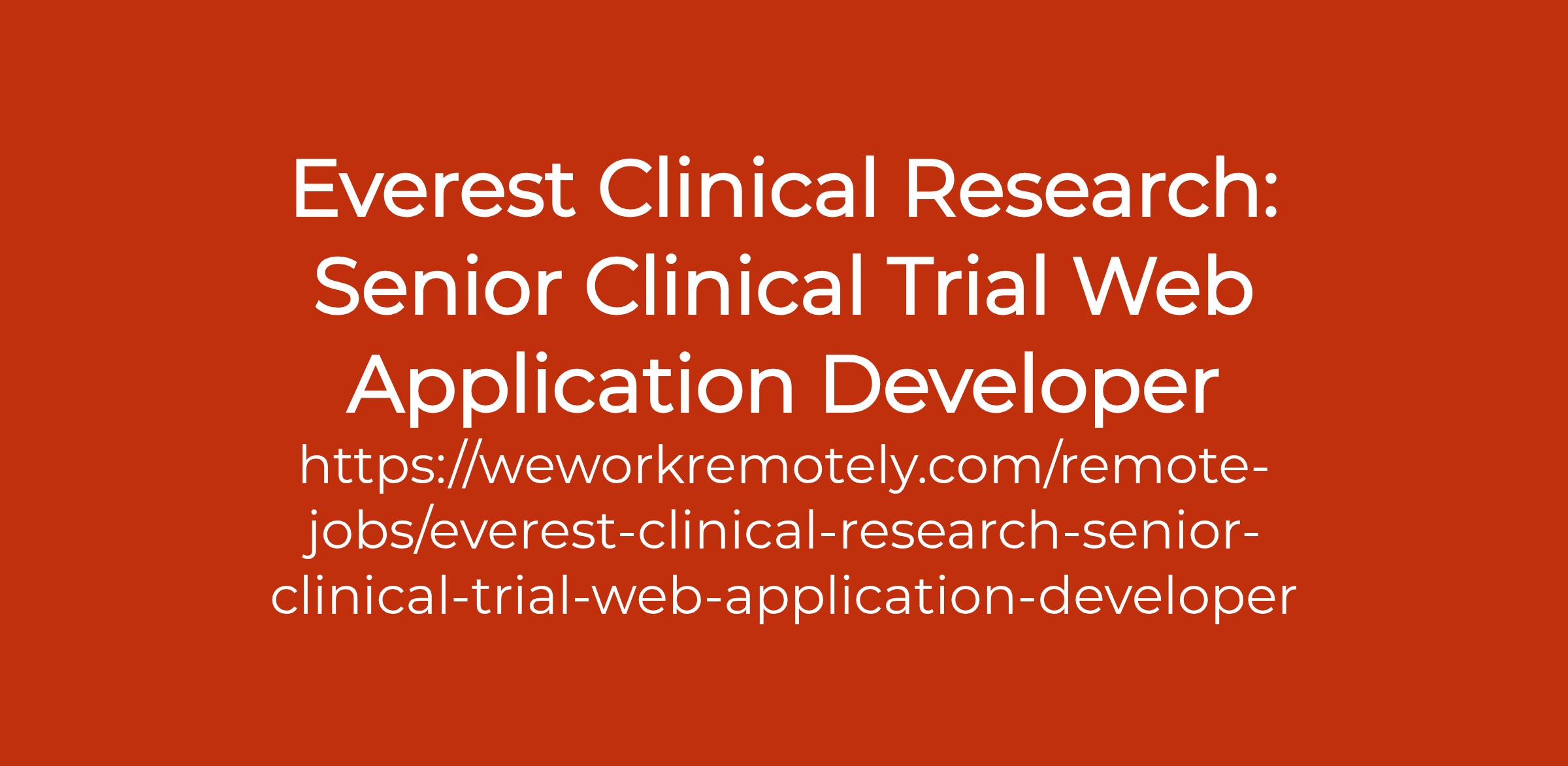 To apply: https://weworkremotely.com/remote-jobs/everest-clinical-research-senior-clinical-trial-web-application-developer