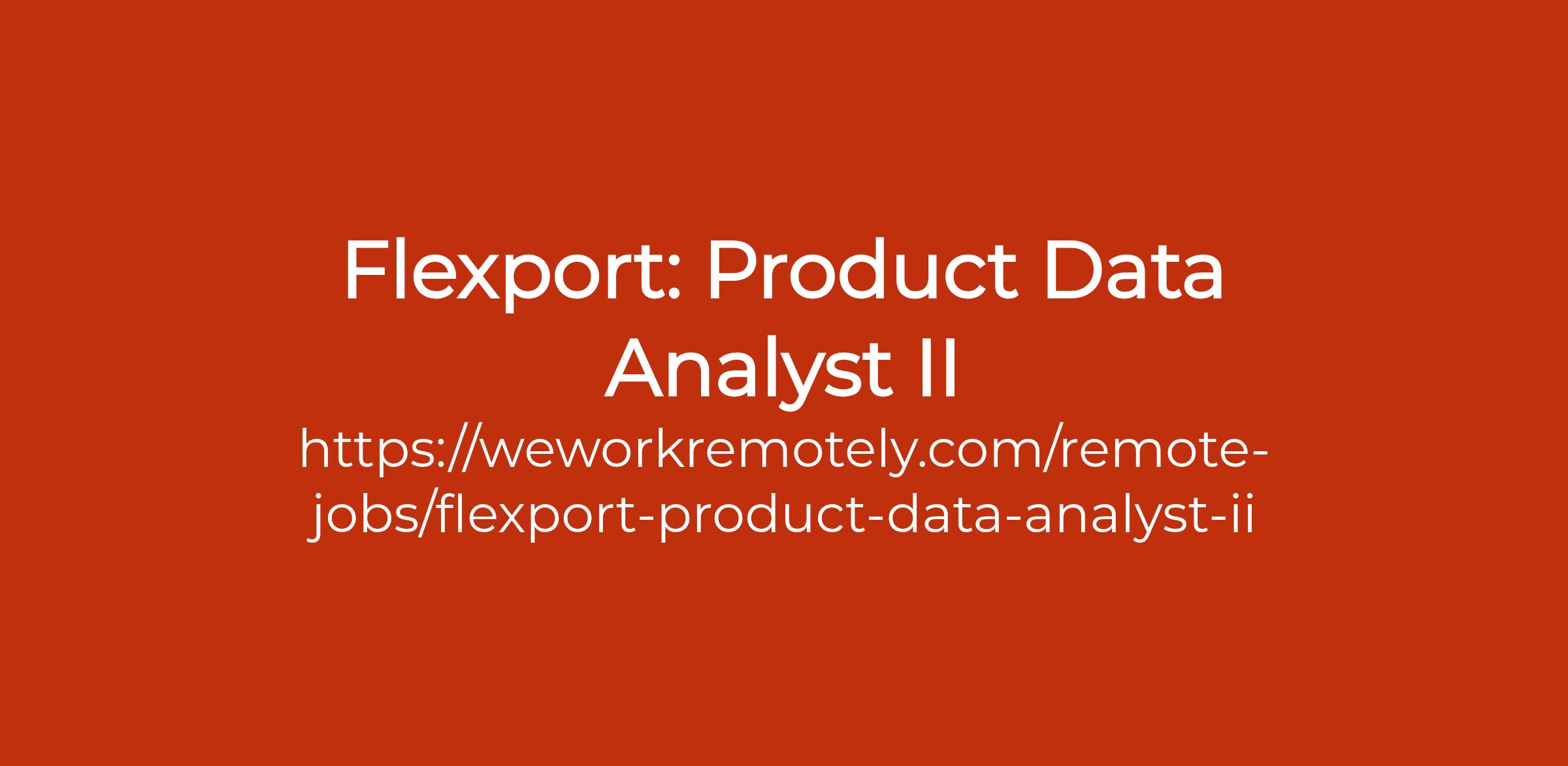 About Flexport: At Flexport, we believe global trade can move the human race forward. That’s why it’s our mission to make global commerce so easy there will be more of it. We’re shaping the future of a $10T industry with solutions powered by innovative technology and exceptional people. Today, companies of all sizes—from emerging brands to Fortune 500s—use Flexport technology to move more than $19B of merchandise across 112 countries a year. The recent global supply chain crisis has put Flexport center stage as we continue to play a pivotal role in how goods move around the world. We are proud to have the support of the best investors in the game who believe in our mission, solutions and people. Ready to tackle global challenges that impact business, society, and the environment? Come join us.About Flexport: At Flexport, we believe global trade can move the human race forward. That’s why it’s our mission to make global commerce so easy there will be more of it. We’re shaping the future of a $8.6T industry with solutions powered by innovative technology and exceptional people. Today, companies of all sizes - from emerging brands to Fortune 500s - use Flexport technology to move more than $19B of merchandise across 112 countries a year. The recent global supply chain crisis has put Flexport center stage as we continue to play a pivotal role in how goods move around the world. At a valuation of $8 billion, we’re experiencing record growth and are proud to have the support of the best investors in the game who believe in our mission, solutions and people. Ready to tackle global challenges that impact business, society, and the environment? Come join us. Creating insights to revolutionize an industry! The opportunity: Fast, accurate insights are integral in allowing us to fulfill our mission of fixing the user experience in global trade. At Flexport you’ll conduct analyses that are at the forefront of reshaping the entire logistics & supply chain industries. You’ll work alongside self-starters interested in solving real-world problems and streamlining the inefficiencies in the complex global trade industry. You’ll have the opportunity to improve an industry by analyzing the new operating system for global trade. You will: Flexport is a company that runs on data - you'll be transforming data into action by working cross-functionally with the entirety of Flexport. Meet with stakeholders - from business and product - to understand OKR requirements and convert them into analytical solutions Model new product analytics datasets built on our proprietary operations software to optimize growth strategies and cost reductions Improve operational and financial productivity across our business and software Rapid prototype new functionality via dashboards to enable new ways of working and discover best practices for workflow management across all of Flexport's departments; Contribute and grow the culture of excellence on our team by bringing processes and best practices to our group. Drive highly visible projects for Flexport Influence the roadmap for both the Data Analytics department and the stakeholders we support You should have: 2-5 years of experience in a Data Analyst, BI Engineer, Product Analyst, or similar role Strong SQL fluency required – from building entire ERDs of tables containing complex logic to analyzing those datasets into consumable insights for the business. Experience ELT data modeling, especially with dbt (data build tool) is a plus; building analytical narratives using data visualizations (Looker is a plus) Executive communication skills and empathy to understand and discover business pain points and build solutions to improve the user experience at all levels of the global trade process Interest in optimizing operational productivity and measuring automation across our software and business processes familiarity with applied statistics and scripting languages like Python or R Worried about not having any logistics experience? Don’t be! Our mission is to make global trade easy for everyone. That’s why it’s important to bring people from diverse backgrounds and experiences together with our industry veterans to help move the global logistics industry forward. We know this industry is complex. That’s why we invest in education starting day one with Flexport Academy, a one week intensive onboarding program designed specifically to set every new Flexport employee up for success. Commitment to Equal Opportunity At Flexport, our ability to fulfill our mission of making global commerce easy and accessible relies on having a diverse, dedicated and engaged workforce. All qualified applicants will receive consideration for employment regardless of race, color, religion, sex, national origin, age, physical and mental disability, health status, marital and family status, sexual orientation, gender identity and expression, military and veteran status, and any other characteristic protected by applicable law. Global Data Privacy Notice for Job Candidates and Applicants Depending on your location, the General Data Protection Regulation (GDPR) and California Consumer Privacy Act (CCPA) may regulate the way we manage the data of job applicants. By submitting your application, you are agreeing to our use and processing of your data as required. Please see our Privacy Notice available at www.flexport.com/privacy for additional information.To apply: https://weworkremotely.com/remote-jobs/flexport-product-data-analyst-ii