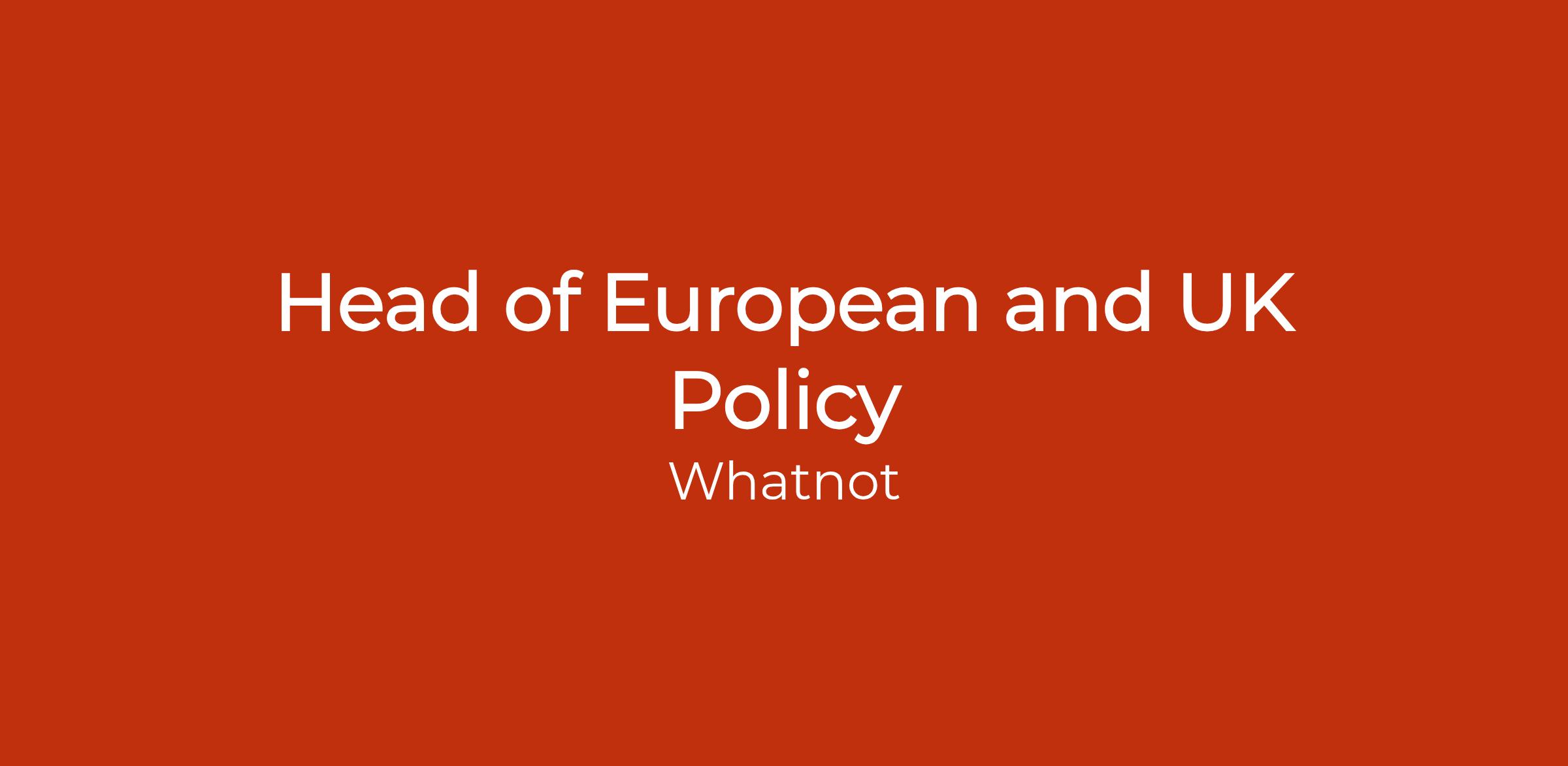 As Head of European and UK Policy, youâll: