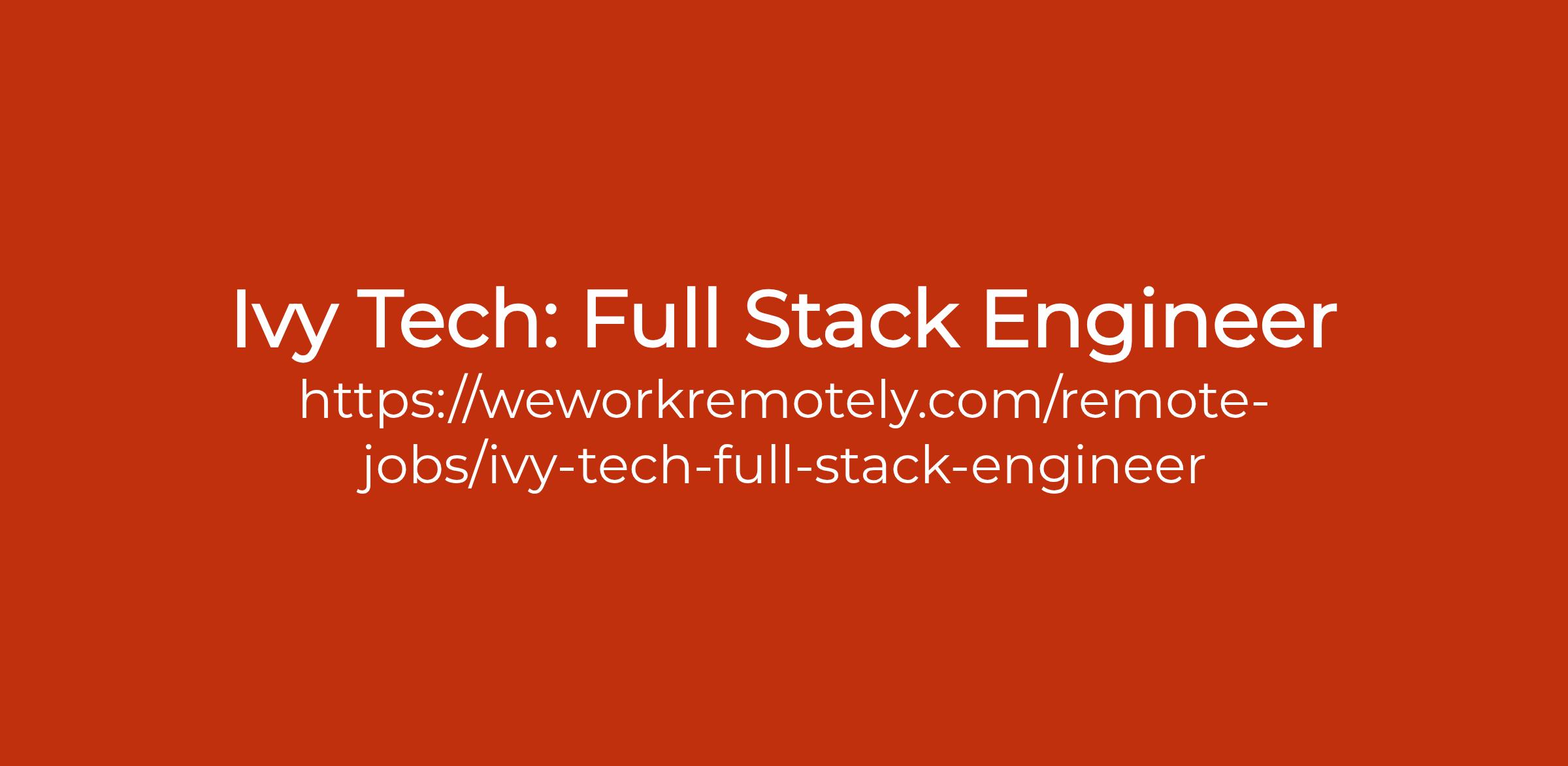 To apply: https://weworkremotely.com/remote-jobs/ivy-tech-full-stack-engineer