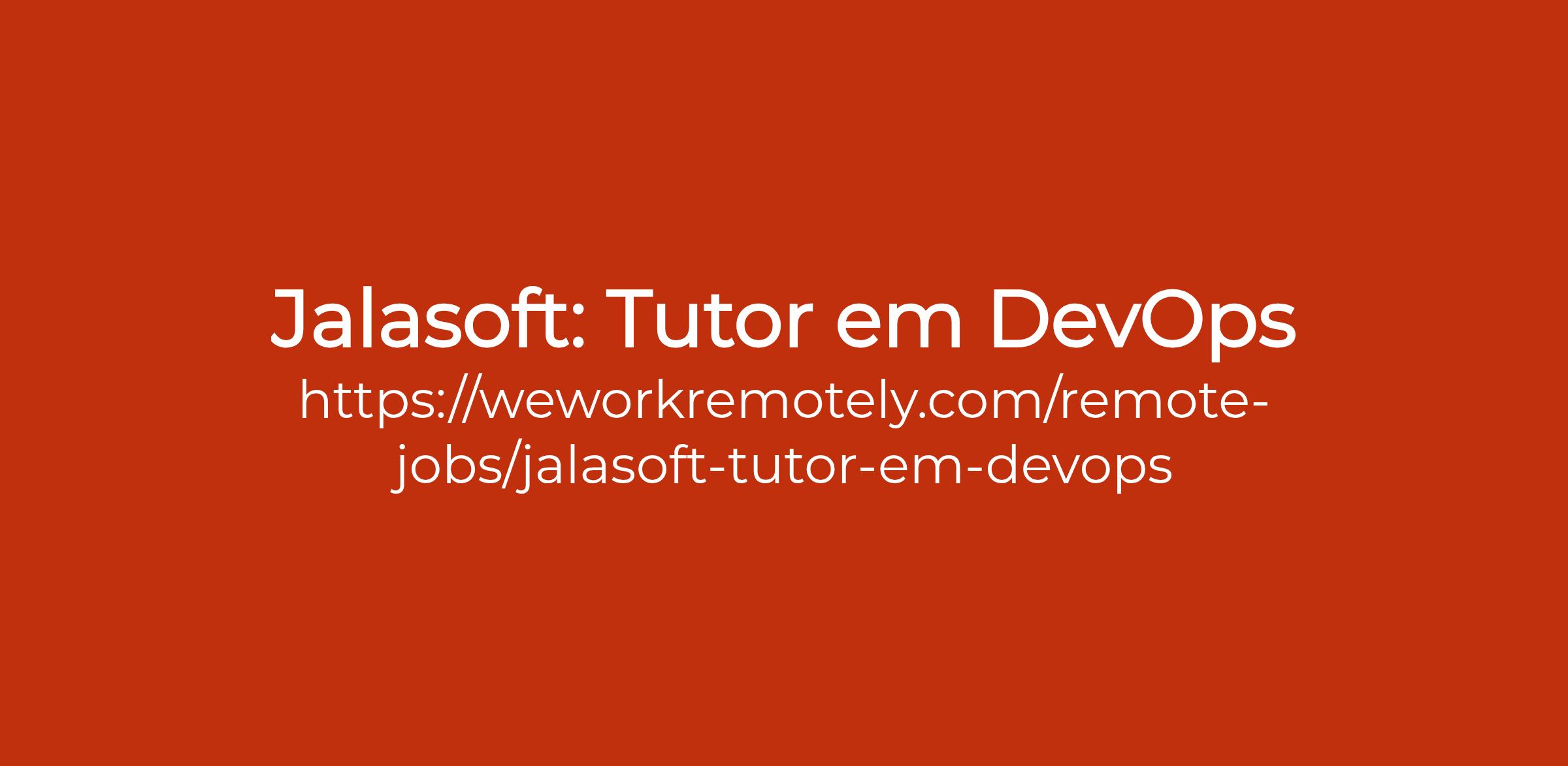 A Universidade Jala é uma iniciativa inovadora concebida para reduzir o fosso entre o meio académico e a indústria, proporcionando uma formação prática adaptada às exigências da indústria, com um modelo educativo único que engloba e une os especialistas da academia e os especialistas da indústria.Procuramos transformar as economias de regiões desfavorecidas através da indústria de software, criando oportunidades profissionais com impacto na vida das pessoas, comunidades e regiões, pensando em deixar um legado para as gerações futuras. Bacharelado em ciência da computação ou engenharia da computação. Pelo menos 3 anos de experiência profissional na área. Pelo menos 1 ano de experiência em ensino à distância na Universidade. Língua portuguesa nativa para ministrar aulas. Conocimiento sólido en los siguientes temas: Cultura Agile, Contêineres, Integração Contínua e Entrega Contínua (CI/CD). Trabalho 100% remoto Continuação do desenvolvimento do ensino na indústria de software Oportunidade de trabalho em uma universidade internacional Ensino na língua nativa (Purtuguese) Bom ambiente de trabalho com foco em habilidades da indústria de softwareTo apply: https://weworkremotely.com/remote-jobs/jalasoft-tutor-em-devops
