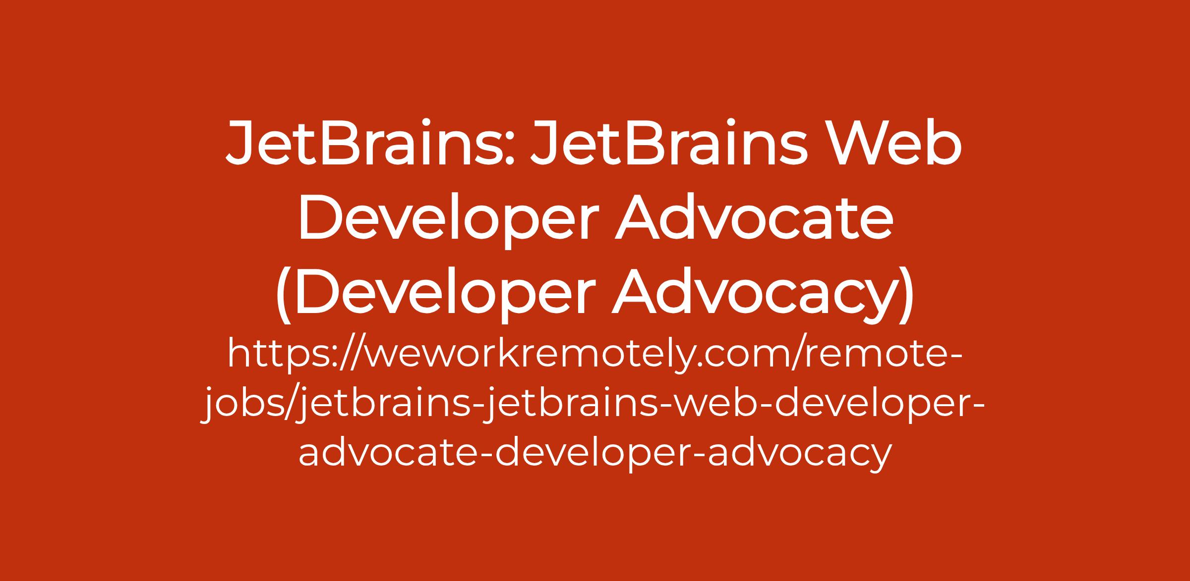 To apply: https://weworkremotely.com/remote-jobs/jetbrains-jetbrains-web-developer-advocate-developer-advocacy