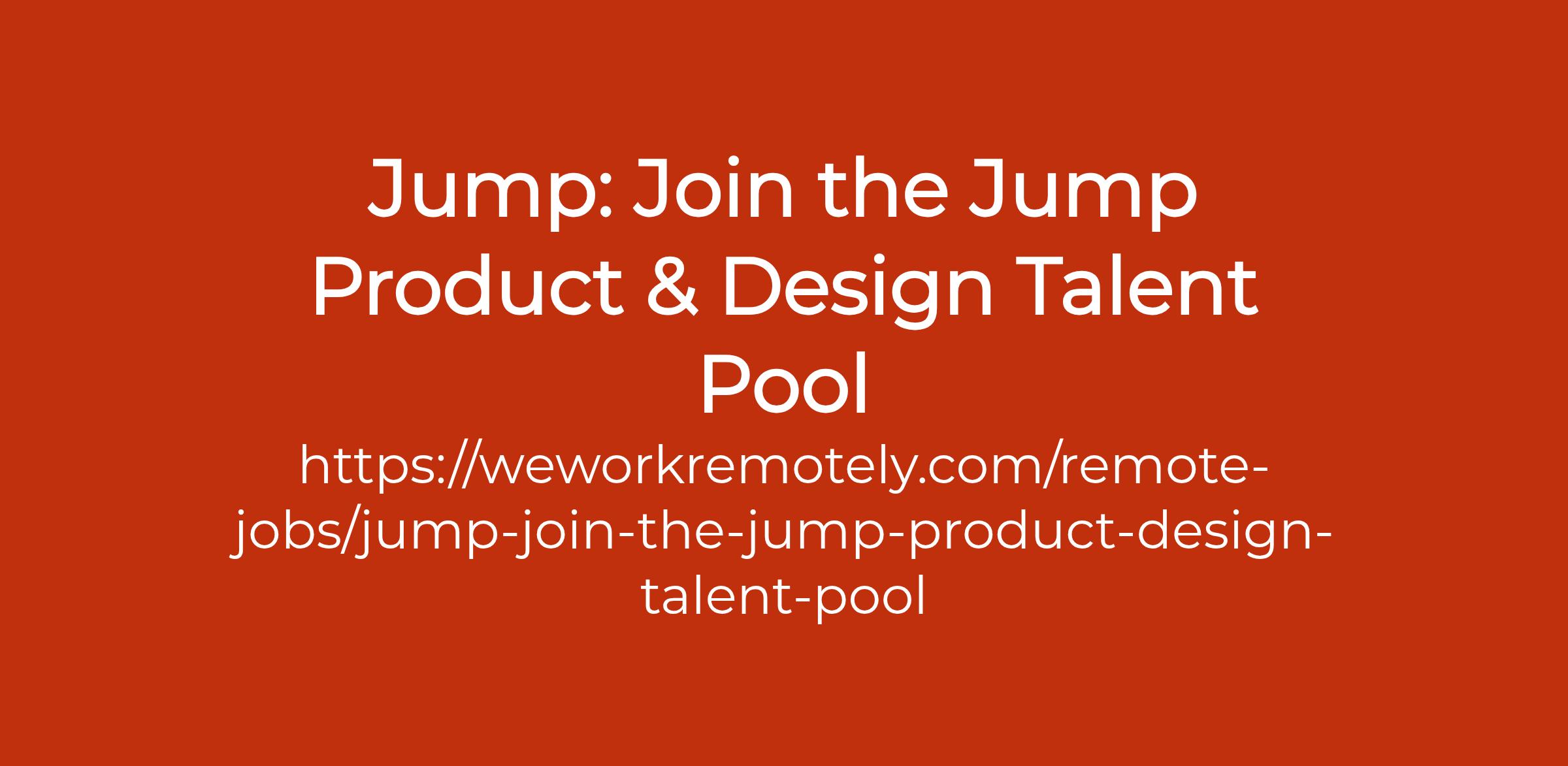 Thanks for your interest in learning more about Jump! We are always on the lookout for talented product managers and product designers to join our growing team. So drop us a line if you're interested in being added to our talent pool. Read more about what we're building and how to stay in touch below.Jump is the only end-to-end fan experience platform built for sports teams and venues, breaking the mold for what fans can expect at live events. Jump’s enterprise software enables sports teams and venues to unlock the massive opportunities that come from real relationships with their fans, rethinking the traditional model that hasn’t put the fan experience first.Founded in 2021 by Marc Lore, Alex Rodriguez, and Jordy Leiser and backed by top venture firms including Forerunner Ventures, Will Ventures, Mastry Ventures, Courtside Ventures, and more, we’re just getting started! We are a remote first team that grounds our actions and decisions in our core values — begin with trust, bring our all, and blaze a trail. Living our values means that we always assume positive intent, show up with authenticity and empathy, and push the limit of what is possible with our collective creativity.As a member of the Product & Design team, you’ll have a strong voice in product strategy and defining the future of live event experiences. We experiment, move fast, fail quickly, and apply new learnings as we try new ideas. You will work closely with passionate leaders, engineers, and other product managers & designers to build transformational experiences for fans and teams. We look for people with the following traits:A strong desire to learn. You are curious and willing to dive deep to become a subject matter expert in our domainTenacity. You enjoy working on challenges that others can’t or don’t want to tackle and you aren’t afraid of failing fast in order to find better solutions.Passion. You love using your technical skills to build products that solve real problems. You hold yourself to a high standard and help to elevate others as well.Empathy. You thrive in an environment where everyone can truly be themselves. You understand that our differing life experiences influence who we are and how we show up, and these diverse perspectives enrich both our team and our product.Customer-centric mindset. You can understand the problem to be solved and who we are solving it for.If this sounds aligned with your skills and interests, drop us your resume and we’ll reach out if there’s a role that might align with our team’s needs in the future.To apply: https://weworkremotely.com/remote-jobs/jump-join-the-jump-product-design-talent-pool