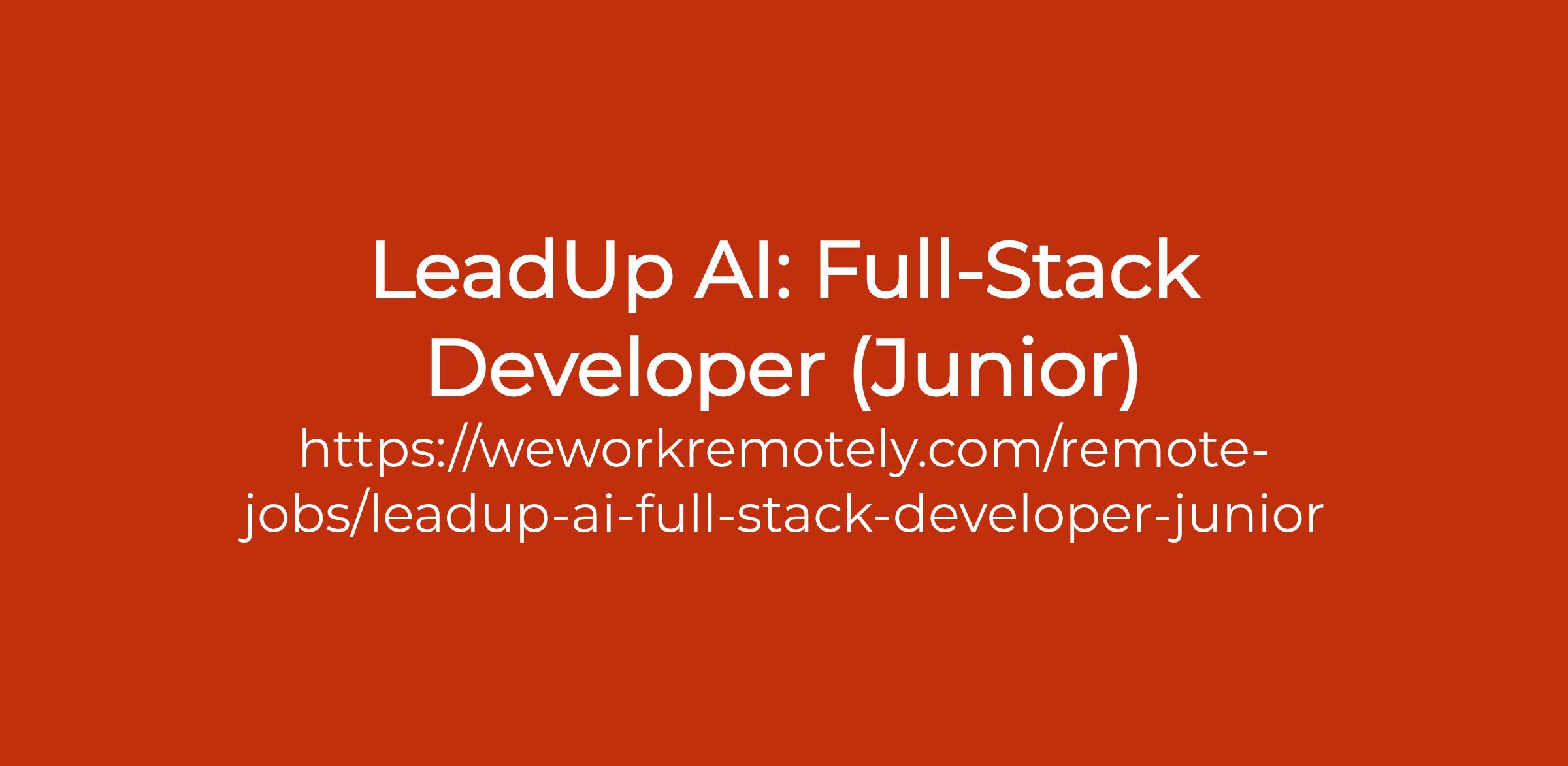 To apply: https://weworkremotely.com/remote-jobs/leadup-ai-full-stack-developer-junior