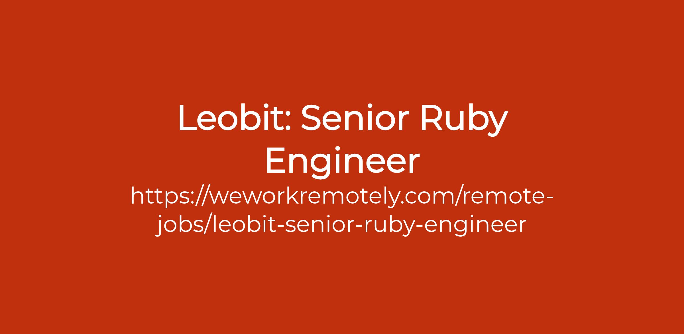 To apply: https://weworkremotely.com/remote-jobs/leobit-senior-ruby-engineer