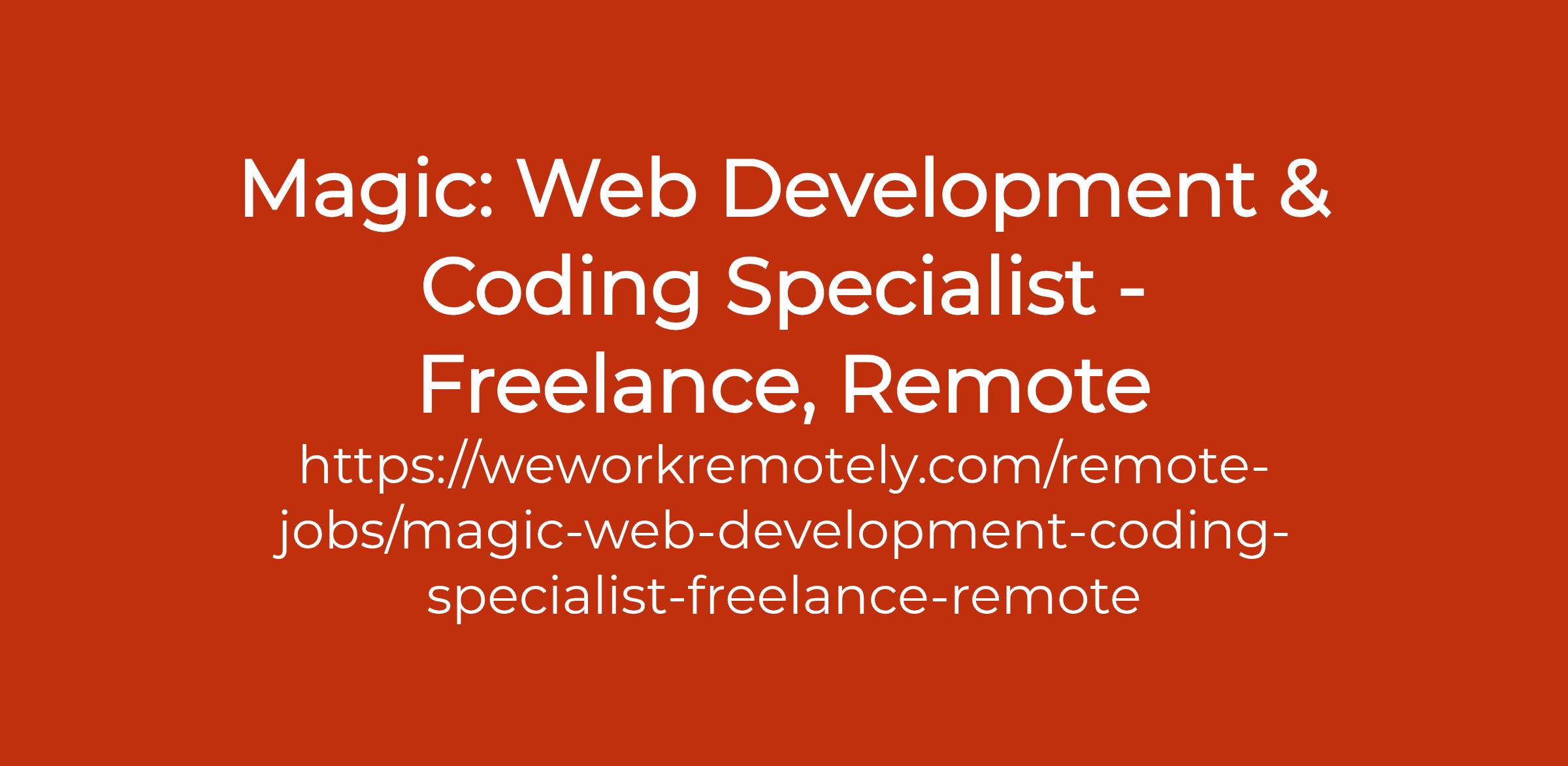 To apply: https://weworkremotely.com/remote-jobs/magic-web-development-coding-specialist-freelance-remote