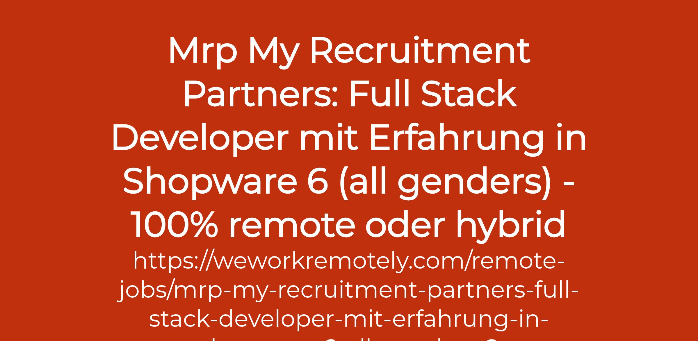 Job descriptionDu bist nicht der typische Full Stack Developer? Wir suchen einen Developer, der transparente Kommunikation, sauberes Coding und qualitativ hochwertige Arbeit nicht nur als Floskel verwendet.Das „montagmorgens“-Gefühl gibt es bei uns nicht:Bei uns darfst Du so sein, wie Du wirklich bist! Koro, Zalando, FC Moto, Wöhrl – Abwechslungsreiche Aufgaben und ProjekteWir leben Feedback und fördern dies!Von Bahncard bis WalkingPad – wir lieben individuelle Ziel- & GehaltssystemeWeiterbildungsmaßnahmen gehören für uns zum AlltagDeine Wunsch-HardwareModerne Büros und die Möglichkeit 100 % remote zu arbeiten80–90 aktive Kunden, die man durch Werbung auf ProSieben oder Höhle der Löwen kenntTeamspirit wird bei uns großgeschrieben - Nerfgun und lustige Memes gehören für uns dazu!minimaler bis starker Kundenkontakt – du entscheidestTech Stack: https://stackshare.io/companies/8mylez-gmbhDiese Aufgaben warten auf DichEin variabler Mix aus Frontend und Backend – HTML, CSS & JavaScript (Vue.Js, React), PHP (Symfony)Konfiguration & Weiterentwicklung von einzigartigen OnlineshopsImplementierung & Umsetzung von Layouts und vorhandenen DesignsUmsetzung komplexer Funktionen und ErweiterungenEntwicklung von innovativen Ideen für den E-CommerceErkunden und Lernen von modernen und neuen WebtechnologienDas bringst Du mitMind. 2 Jahre Erfahrung in Showpare 6Gute Kenntnisse in PHP, insbesondere SymfonyErfahrung mit JavaScript-Frameworks wie Vue.js oder ReactSicherer Umgang mit Git und gängigen Entwicklungs-WorkflowsSpaß, Leidenschaft und persönliches Interesse am ProgrammierenVerantwortungs- und QualitätsbewusstseinLösungsorientierte und selbstständige ArbeitsweiseÜber unsAls ambitionierte E-Commerce-Agentur, mit rund 35 Menschen an Bord, gestalten wir das digitale Einkaufen von morgen und betreuen marktführende Onlineshops. Werde jetzt Teil und hilf mit, das Internet jeden Tag schöner, besser und schneller zu machen.Dir fehlt etwas in unserer Liste?Dann lass es uns in Deinem Anschreiben wissen.All done!Your application has been successfully submitted!Other jobs