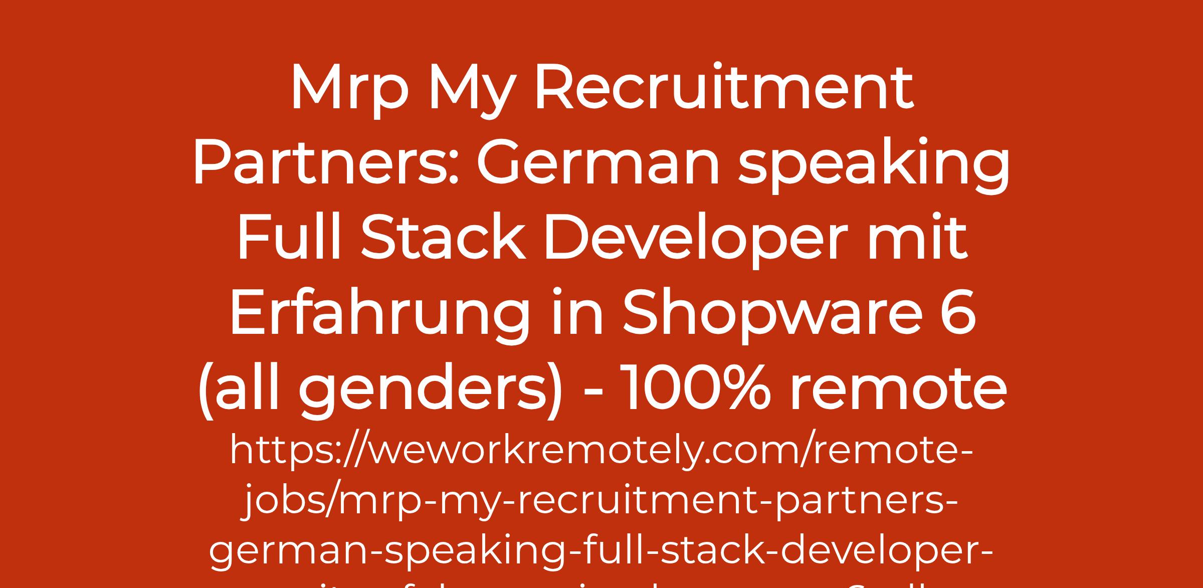 To apply: https://weworkremotely.com/remote-jobs/mrp-my-recruitment-partners-german-speaking-full-stack-developer-mit-erfahrung-in-shopware-6-all