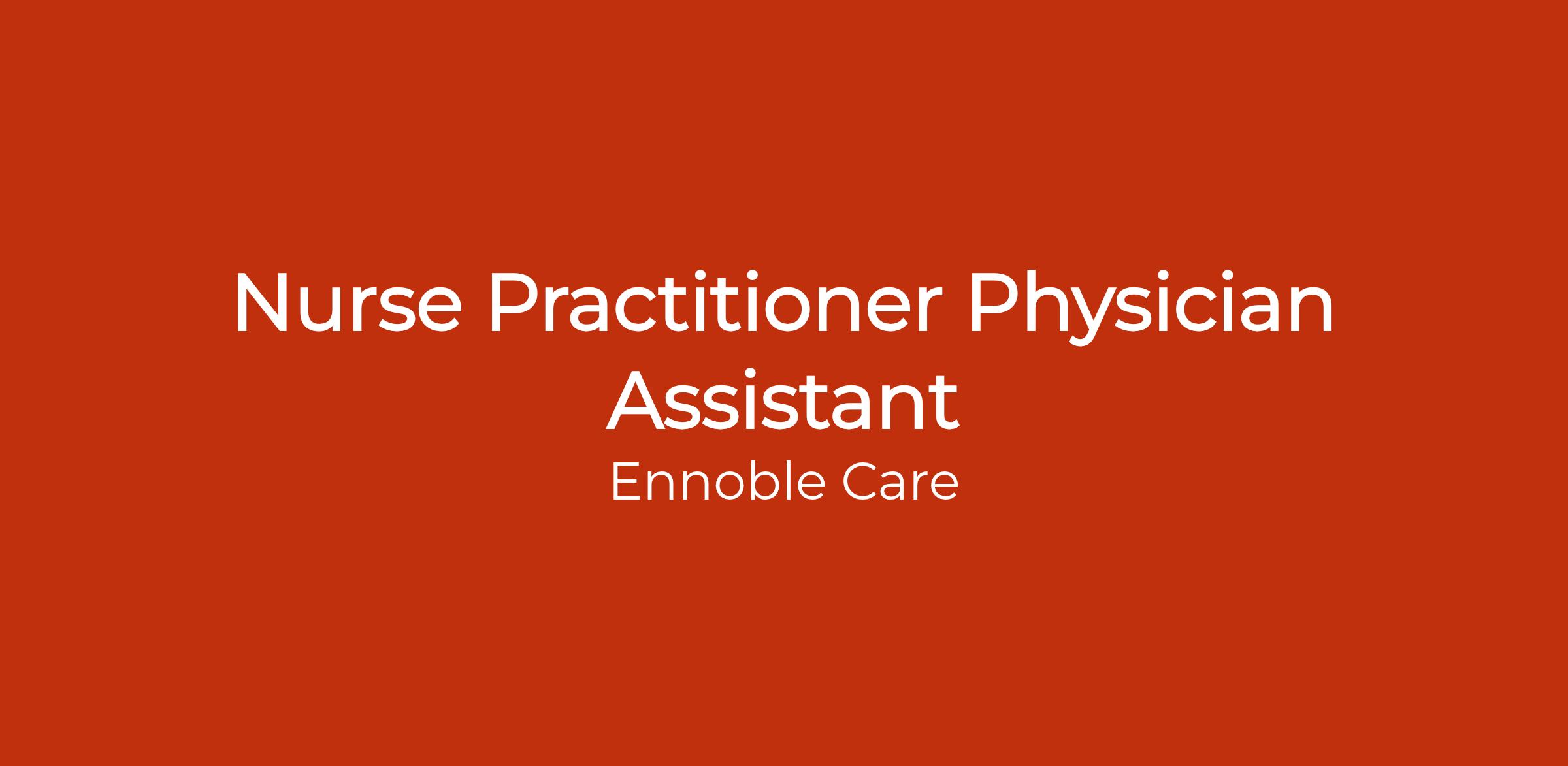 Ennoble Care is a mobile primary care, palliative care, and hospice service provider with patients in New York, New Jersey, Maryland, DC, Virginia, Oklahoma, Kansas, Pennsylvania, and Georgia. Ennoble Care's clinicians go to the home of the patient, providing continuum of care for those with chronic conditions and limited mobility. Ennoble Care offers a variety of programs including, remote patient monitoring, behavioral health management, and chronic care management, to ensure that our patients receive the highest quality of care by a team they know and trust. We seek individuals who are driven to make a difference and embody our motto, "To Care is an Honor." Join Ennoble Care today!