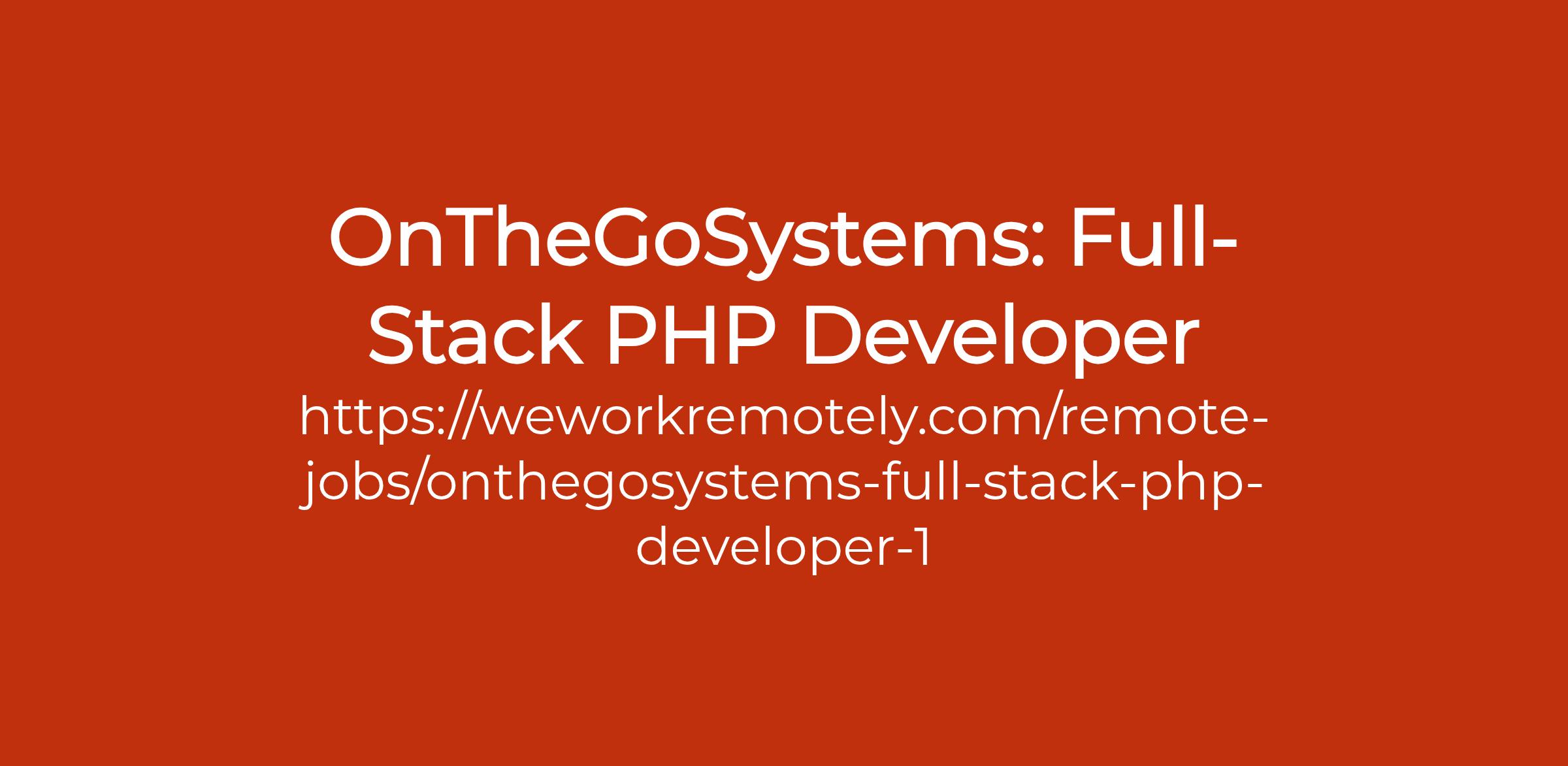To apply: https://weworkremotely.com/remote-jobs/onthegosystems-full-stack-php-developer-1