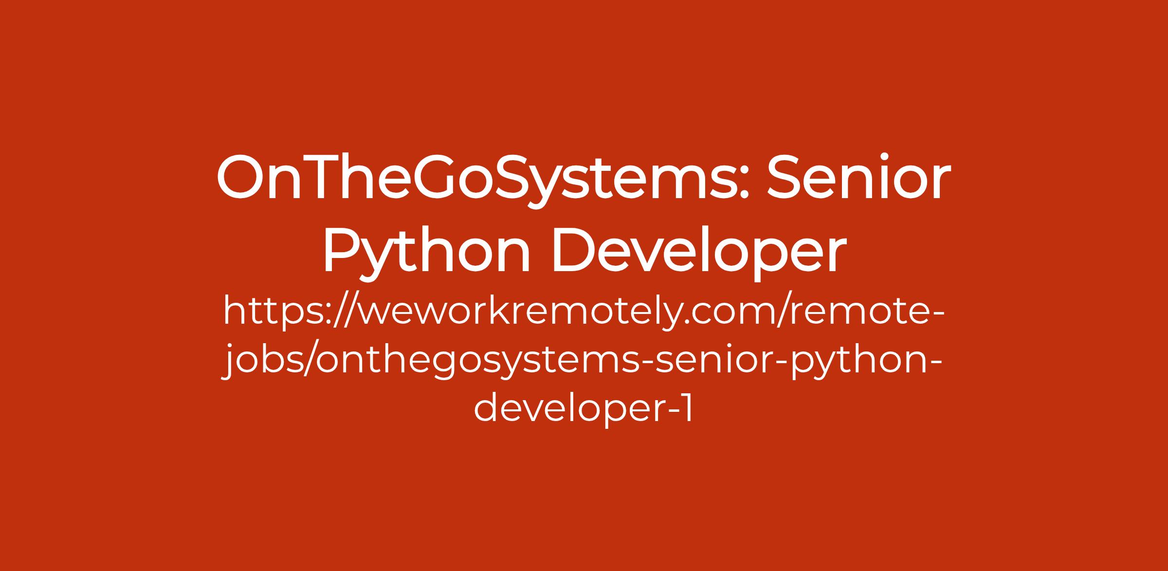 To apply: https://weworkremotely.com/remote-jobs/onthegosystems-senior-python-developer-1