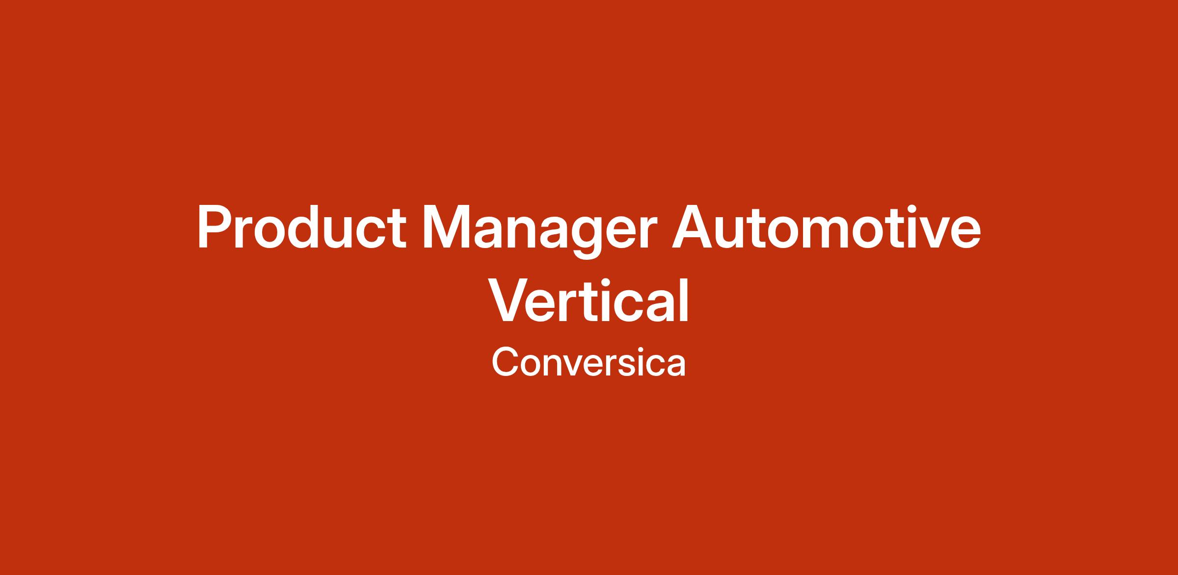 Conversica is looking for a Product Manager, Automotive Vertical to own product strategy, discovery, and execution for our Automotive business. This role is ideal for a product leader with deep automotive domain expertise who understands dealer and OEM workflows and can translate customer and market insights into clear product direction.