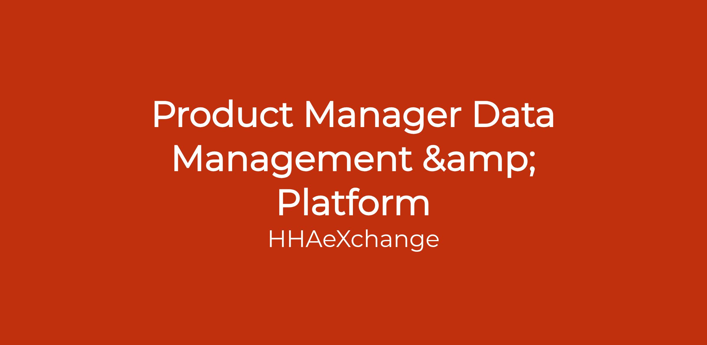 HHAeXchange is seeking a Product Manager, Data Management & Platform to help define, govern, and scale how data is used across our healthcare platform. This role sits at the intersection of Product, Engineering, and Clinical/Financial operations, ensuring that the data powering RCM, EHR, Payroll, Payments, and the Universal Patient Record is accurate, connected, and trusted â and that it serves as a reliable foundation for AI-driven innovation.