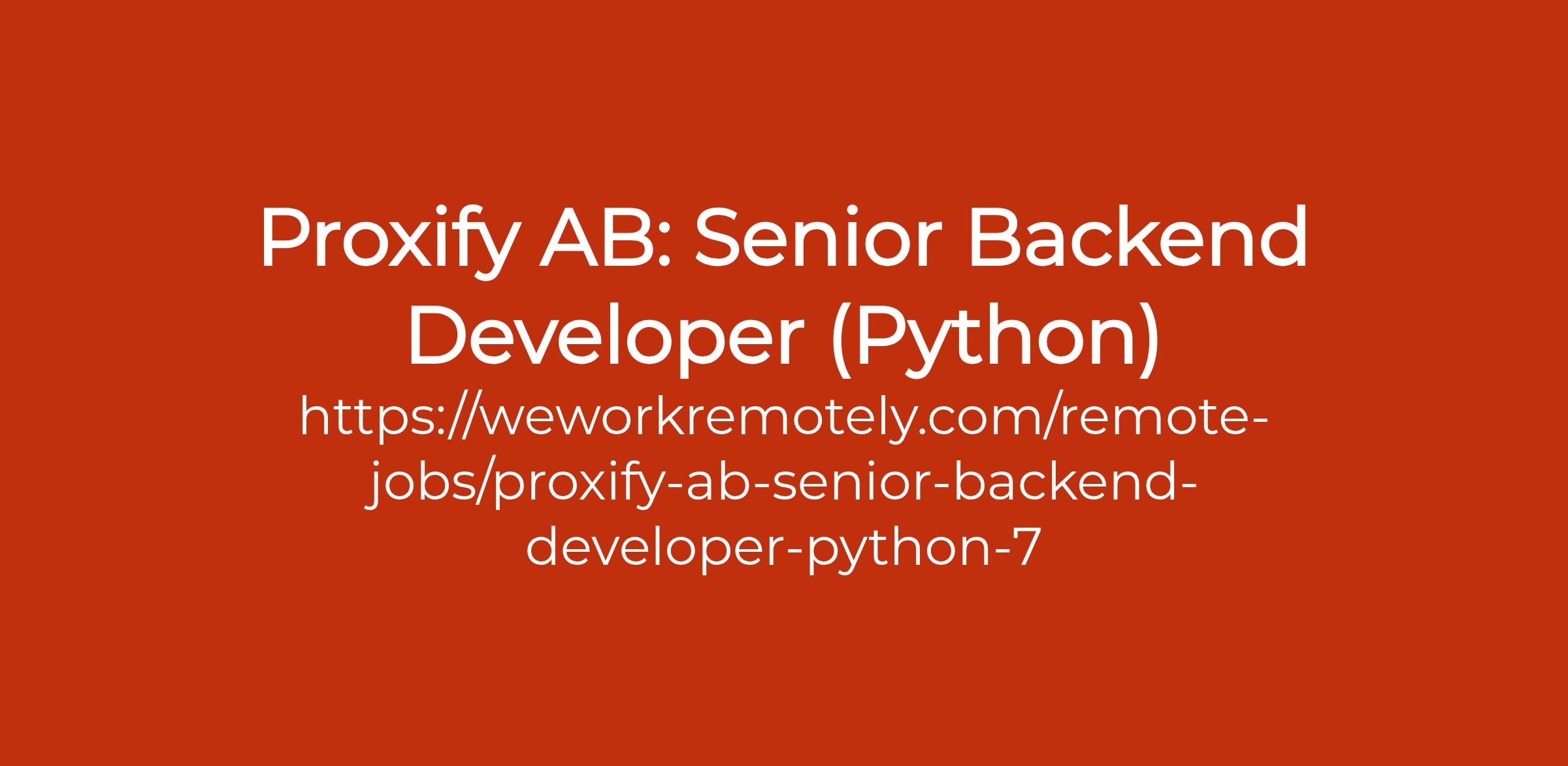 To apply: https://weworkremotely.com/remote-jobs/proxify-ab-senior-backend-developer-python-7