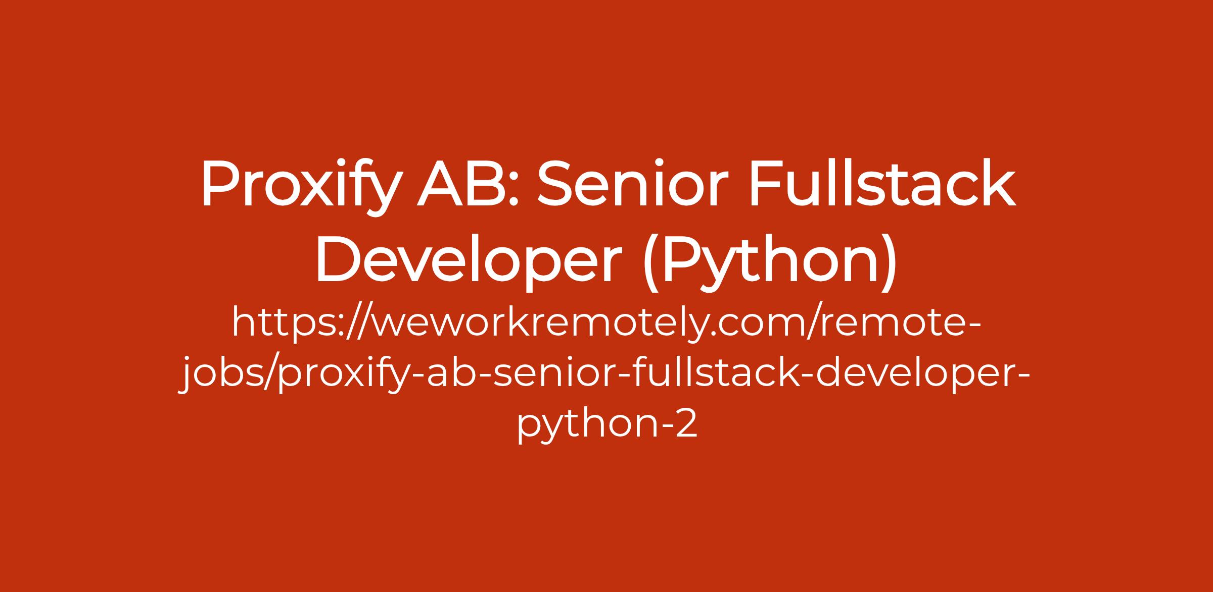 To apply: https://weworkremotely.com/remote-jobs/proxify-ab-senior-fullstack-developer-python-2