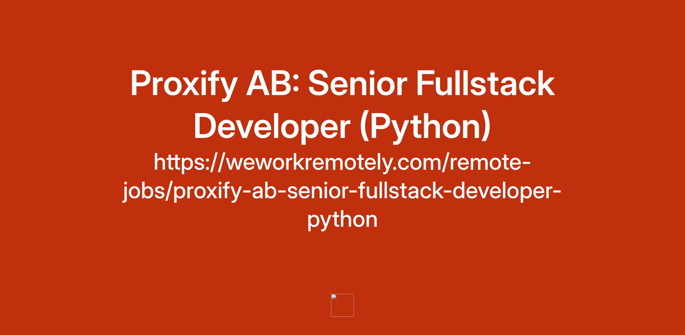 To apply: https://weworkremotely.com/remote-jobs/proxify-ab-senior-fullstack-developer-python