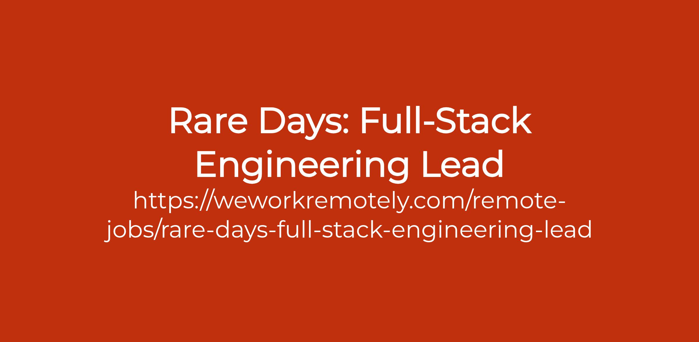 To apply: https://weworkremotely.com/remote-jobs/rare-days-full-stack-engineering-lead