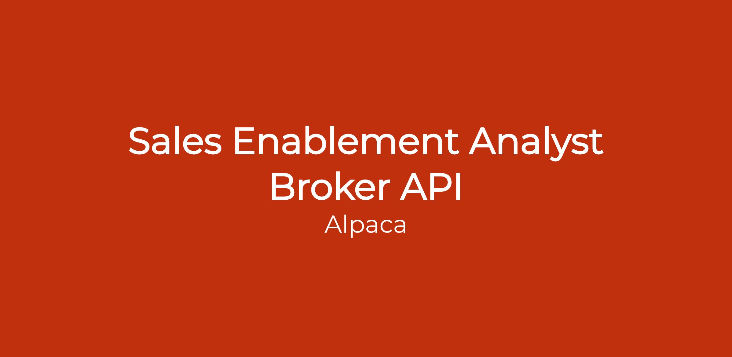 We are looking for a Sales Enablement Analyst to support Alpaca's Broker API division and Broker Sales team. This role sits at the intersection of Sales, Product, Solutions, Marketing, Compliance, and Operations to ensure our sales team is equipped to win, launch, and grow sophisticated broker-dealer and fintech partnerships.