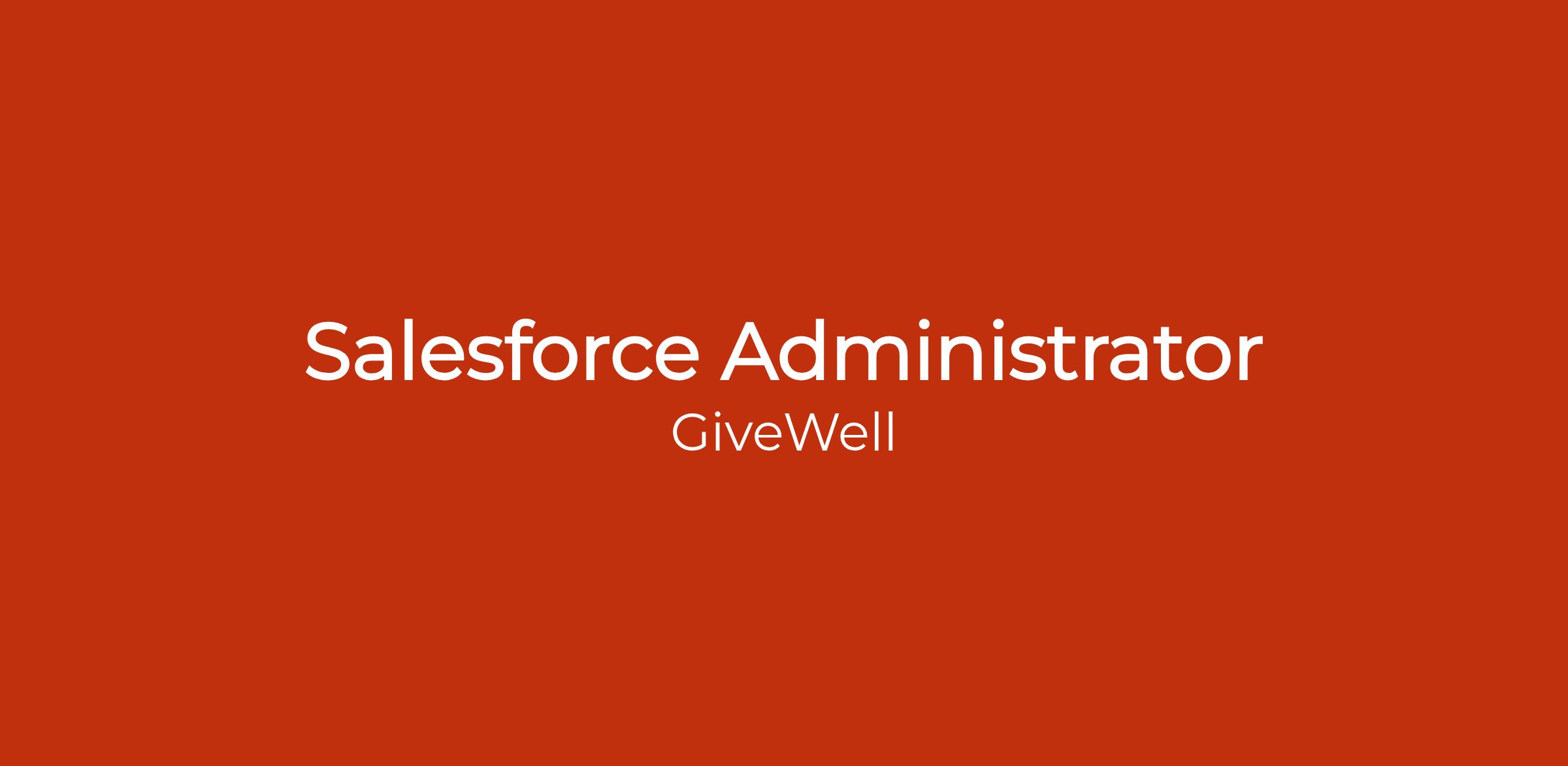 GiveWell is a research organization that identifies and funds cost-effective giving opportunities, focusing on global health and well-being. Our work is funded by tens of thousands of donors who rely on our research to inform their giving. We've grown from directing $1.5 million in 2010 to directing more than $400 million in 2025.The RoleWe're hiring a Salesforce Administrator to support internal users, continuously improve user experience and data quality, and ensure data reliability and consistency across our Salesforce instance. The Salesforce Administrator will fully own the support, maintenance, and roadmap of core products leveraging Salesforce NPSP, and provide front-line support for our custom Salesforce app.Why we're hiring this role right now: GiveWell's fundraising and grants management work depends heavily on Salesforce to operate effectively and scale our impact. Our Technology team currently has only one Salesforce Administrator, and the volume of day-to-day support requests has left little room for proactive improvements such as reducing technical debt, improving data quality, or building new features that would meaningfully benefit our growing organization. As GiveWell grows and our use of Salesforce expands, particularly in grants management, we expect demand to outpace what a single administrator can sustainably support. We're looking for someone who can share the support load, bring additional depth to the team, and help us continuously improve the systems that underpin our life-saving work.As our Salesforce Administrator, you'll support:- Outreach CRM- Gift/Donation Processing System- Grants administration- Service Console/Case Management- Reports & Dashboards.Specific duties will include: