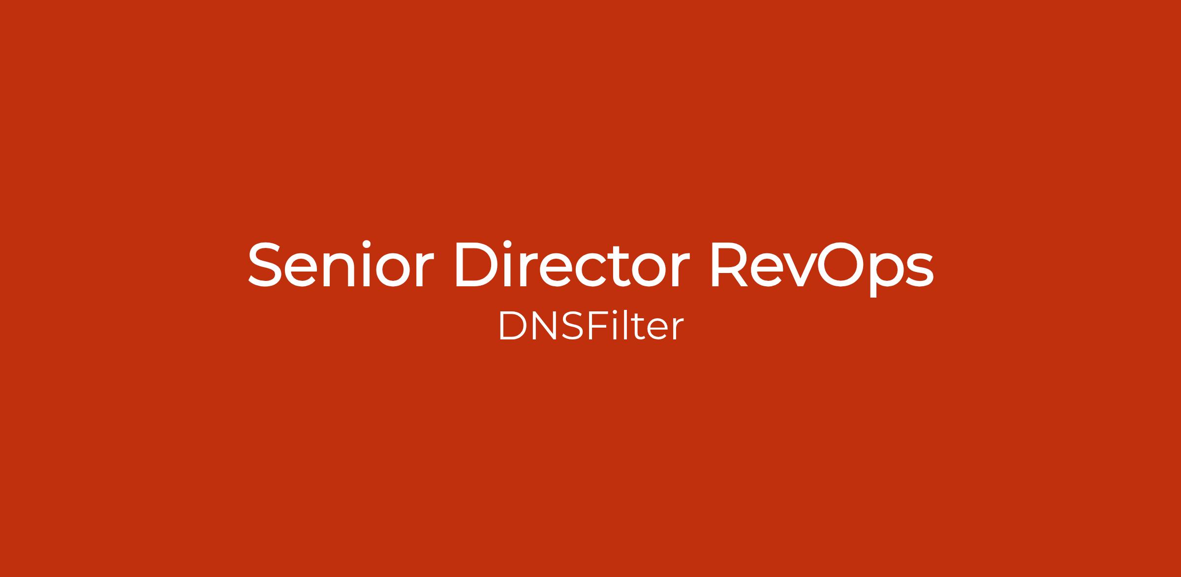 Our mission is to protect our customers and partners with products they love to useâand that mission is powered by a team that cares deeply about how work gets done. At DNSFilter, we balance speed with precision, innovation with responsibility, and ambition with empathy. We thrive in change, value thoughtful execution, and challenge ourselves to be better every day.As we continue our product-fueled growth by adding new features and broadening our solution to meet the needs of the global market, it's clear there's a missing piece. That's where you come in!This role reports to the Chief of Staff and serves as a key strategic partner to executive leadership, Finance, and Go-To-Market leaders across the organization.Weâre seeking a Senior Director, Revenue Operations to drive operational excellence, data integrity, and scalable revenue infrastructure across Sales, Marketing, Customer Success, Support, and Finance. This role is accountable for the effectiveness of our revenue data and GTM systems ecosystem, providing oversight of the analytics data zone and core revenue platforms (including Salesforce, HubSpot, Zendesk, and related tooling) to ensure they consistently serve business needs.This leader is accountable for defining the RevOps systems and data strategy, ensuring that data and system outputs handed to GTM Systems and downstream teams are accurate, reliable, well-modeled, and decision-ready. They ensure revenue systems and analytics work together as a cohesive foundation for reporting, forecasting, automation, and operational execution.We recognize that people come with a wealth of experience and talent beyond just the technical requirements of a job. If you feel like this job is for you, please apply. We believe diversity of experience and skills, including transferable skills, combined with passion, is a key to innovation and excellence; therefore, we encourage people from all backgrounds to apply to our positions!