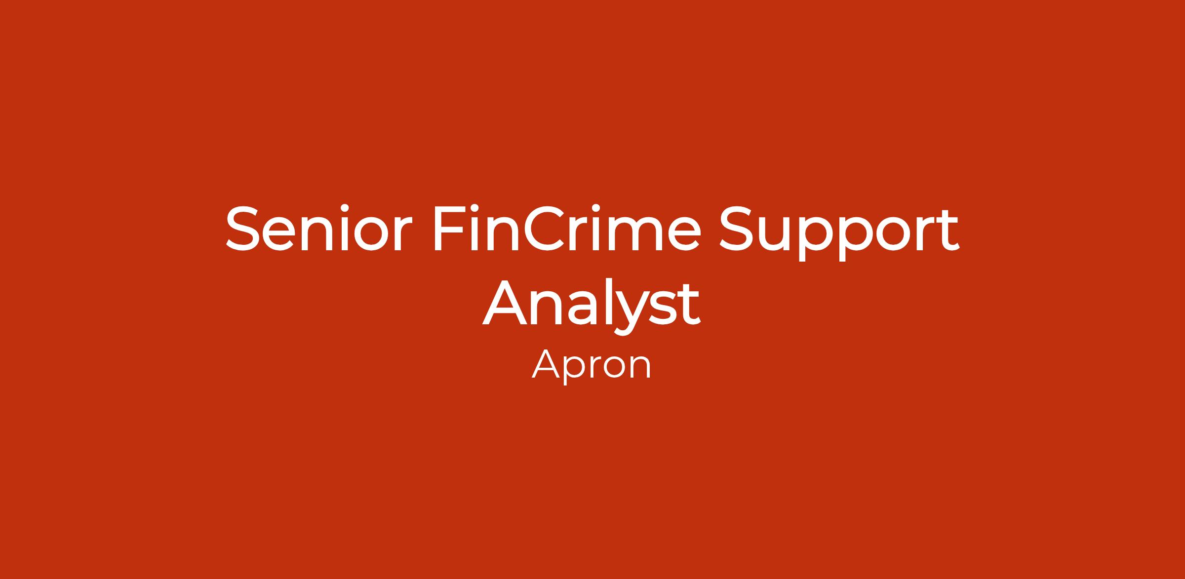 As a Senior FinCrime Support Analyst, youâll play a key role in protecting Apron and its customers from financial crime, while helping scale and improve our operations: