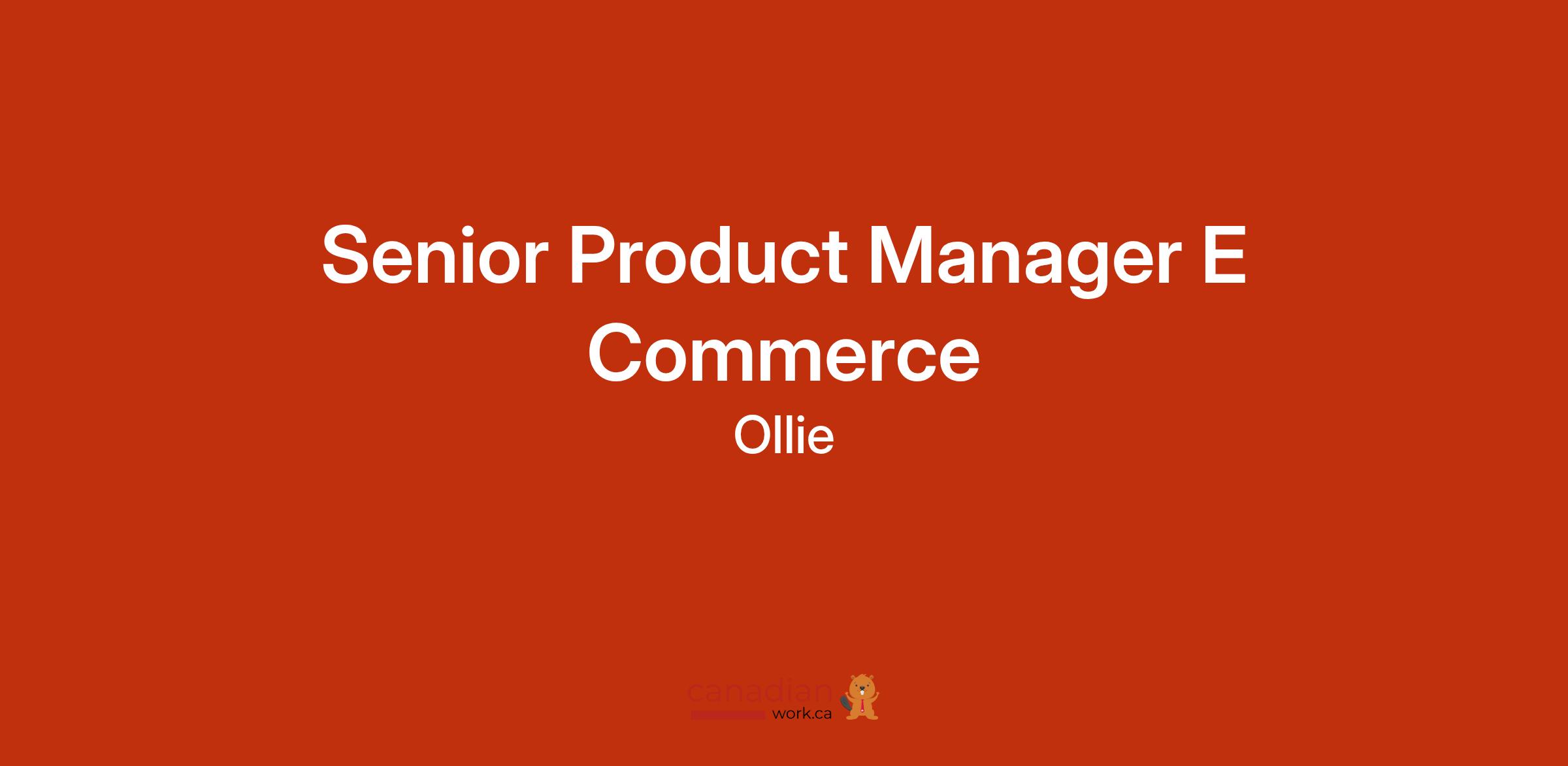 Ollie is looking for a Senior Product Manager, E-commerce to oversee and optimize Ollieâs growth-driving e-commerce platform and tools. This technical product leader will leverage their passion for data-driven experiences, coupled with a deep understanding of e-commerce best practices and technologies, to support the growth side of our business. You will be innovating in a $45 billion space while improving the lives of dogs everywhere.