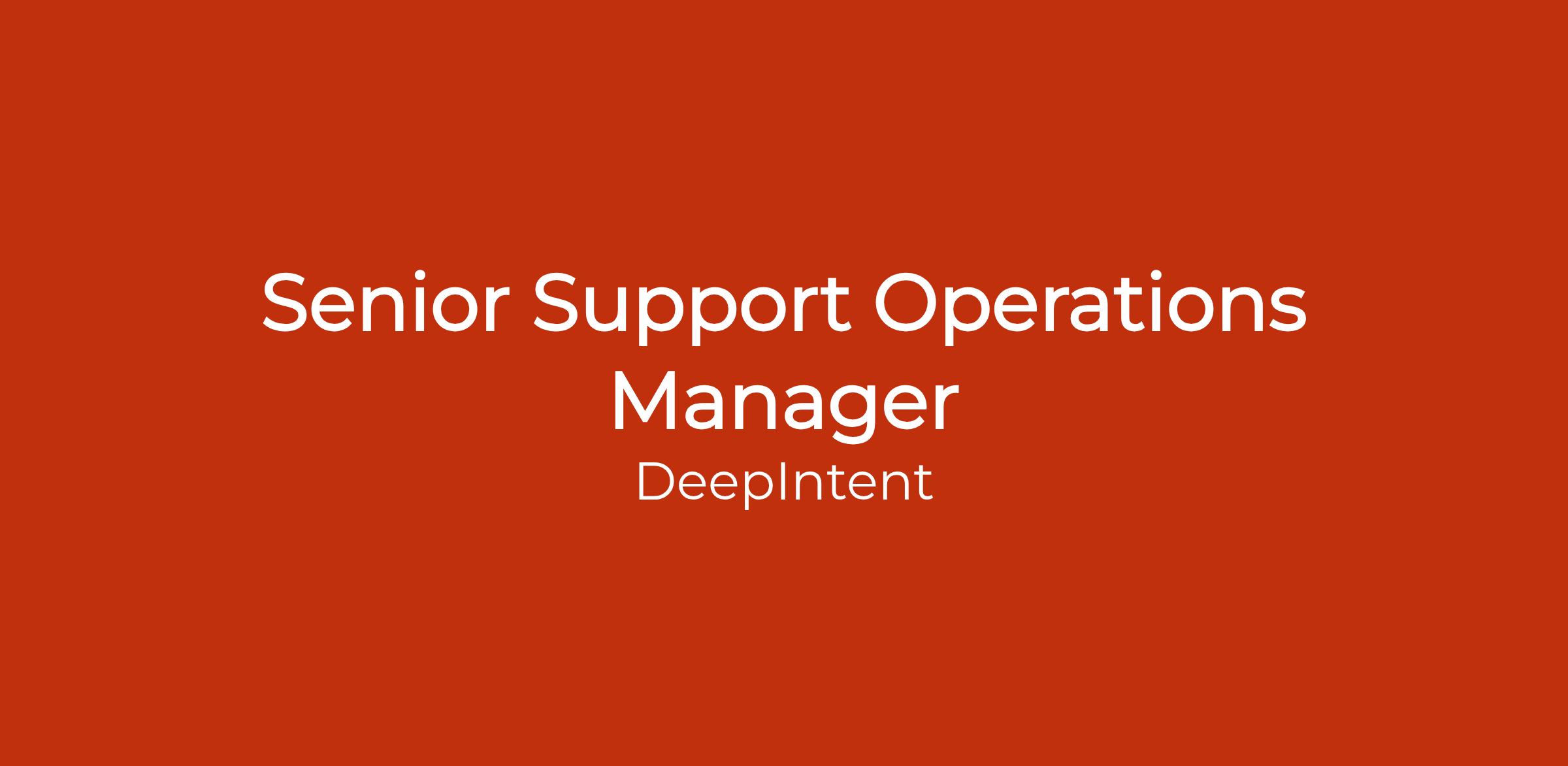 What youâll do: We are seeking a Senior Support Operations Manager to provide strategic and operational leadership for the support systems and processes that power DeepIntentâs customer experience. In this role, you will be responsible for the success of the DeepIntent helpdesk solution powered by Intercomâdriving the implementation and continuous improvement of scalable support workflows, translating data into actionable insights, and building AI-powered customer experiences.