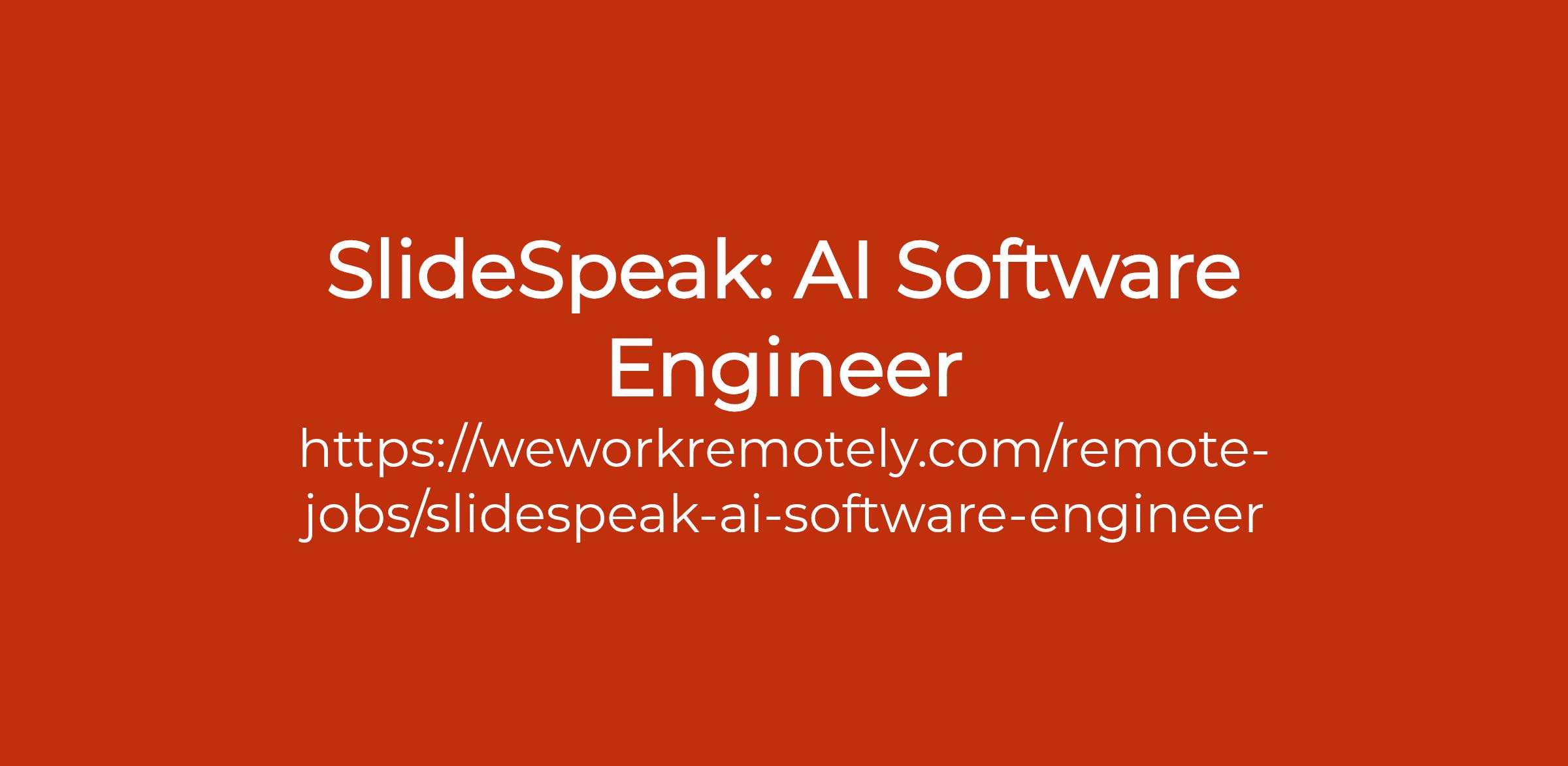 To apply: https://weworkremotely.com/remote-jobs/slidespeak-ai-software-engineer