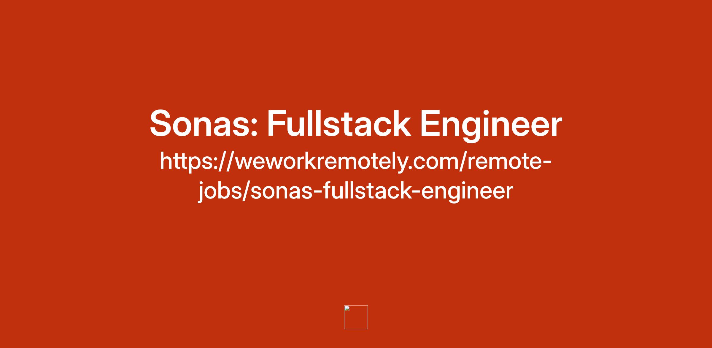 To apply: https://weworkremotely.com/remote-jobs/sonas-fullstack-engineer