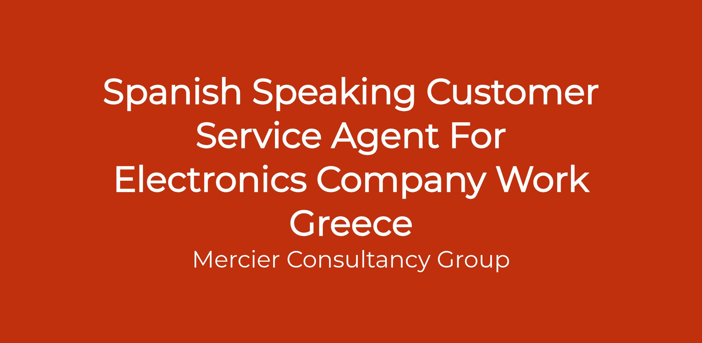Mercier Consultancy MD is excited to announce an opening for a Spanish Speaking Customer Service Agent with a leading electronics company. This role provides the opportunity to work in beautiful Greece while offering superior support to Spanish-speaking customers. Your expertise and dedication will play a vital role in ensuring a positive customer experience with our innovative electronic products.