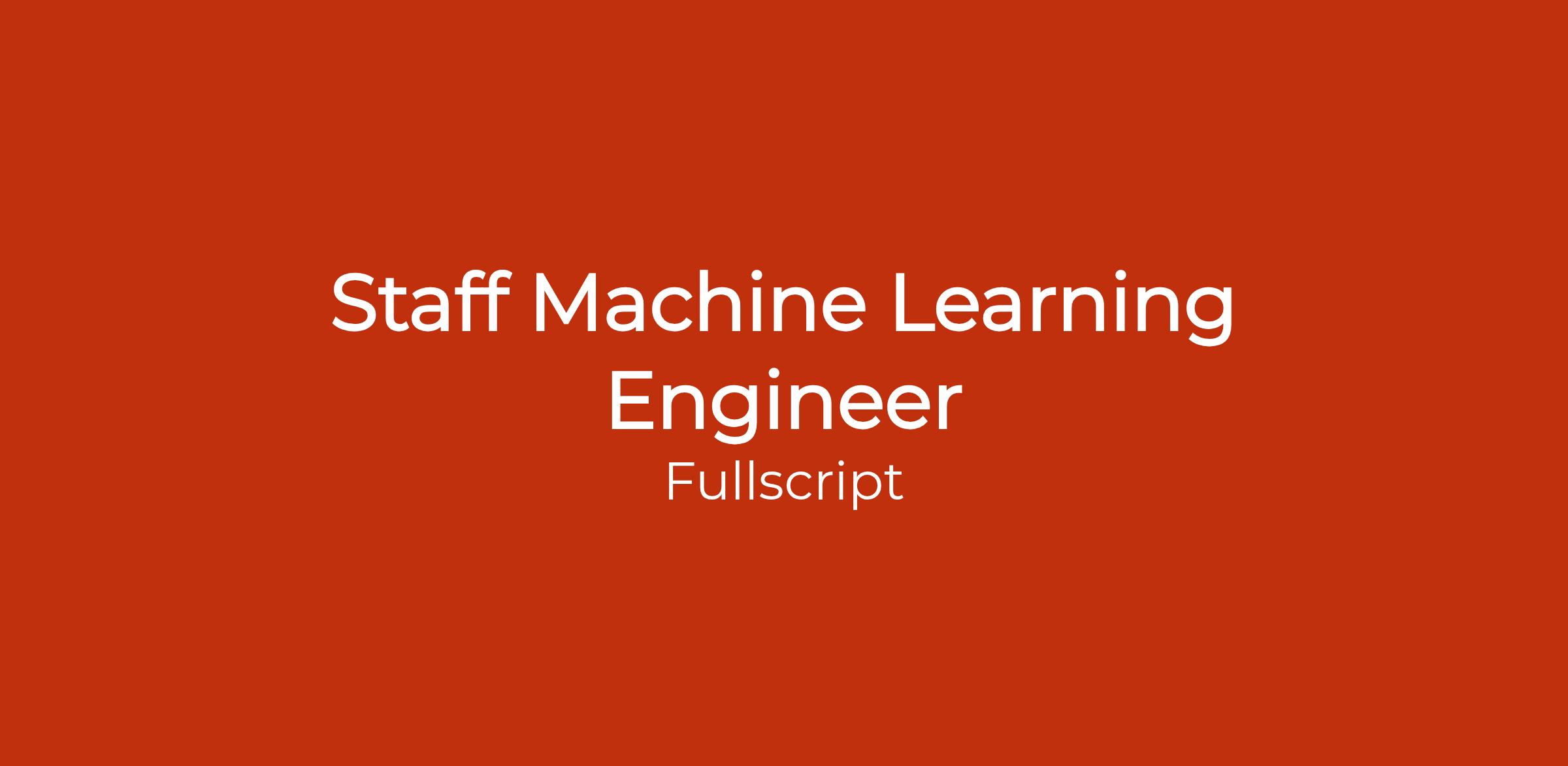 Weâre hiring a Staff Machine Learning Engineer to join our AI team and help shape the next generation of Fullscriptâs AI-powered experiences. Youâll work on building innovative AI capabilities that help clinicians provide better services and help patients improve their health.