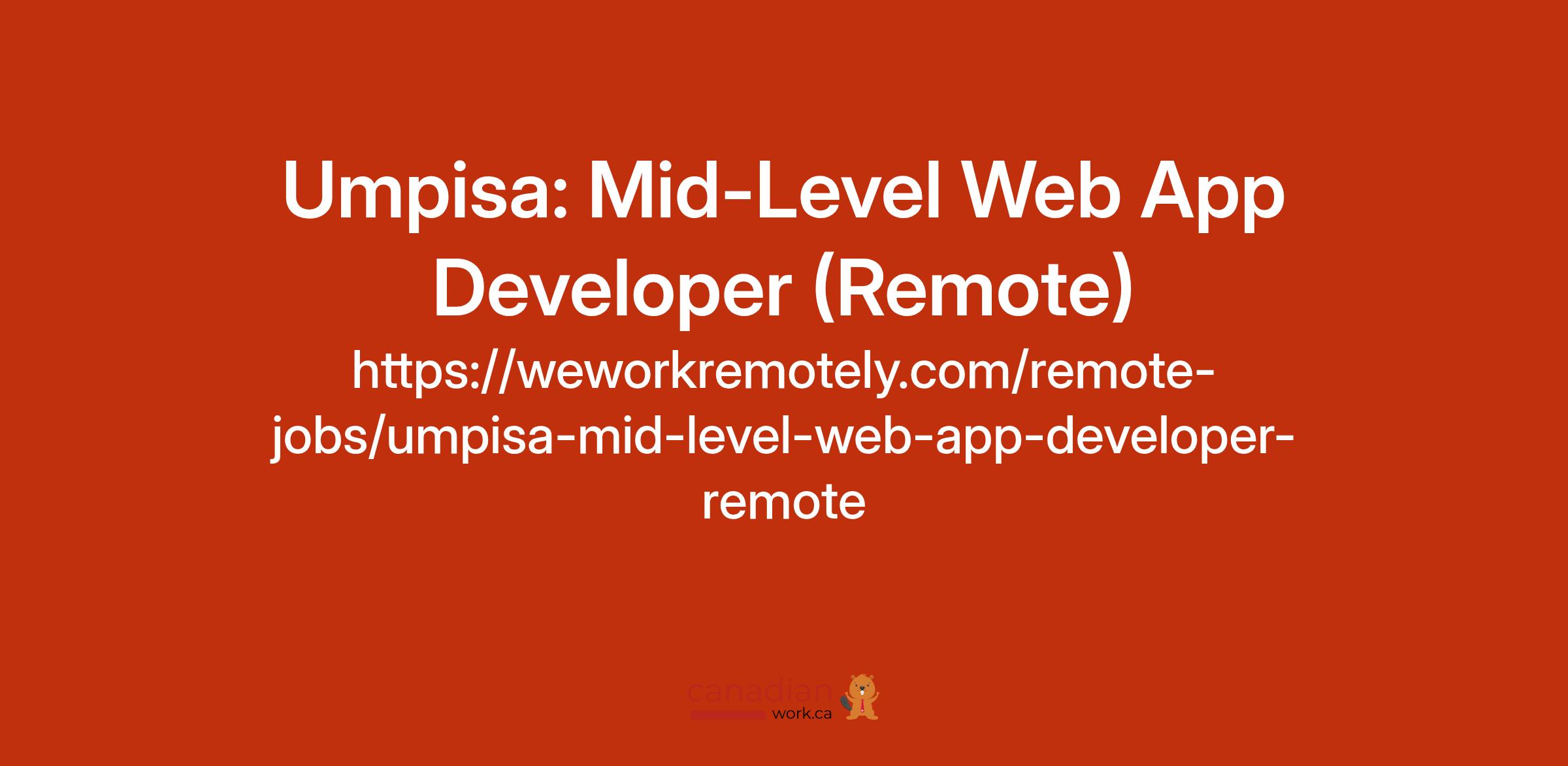 To apply: https://weworkremotely.com/remote-jobs/umpisa-mid-level-web-app-developer-remote